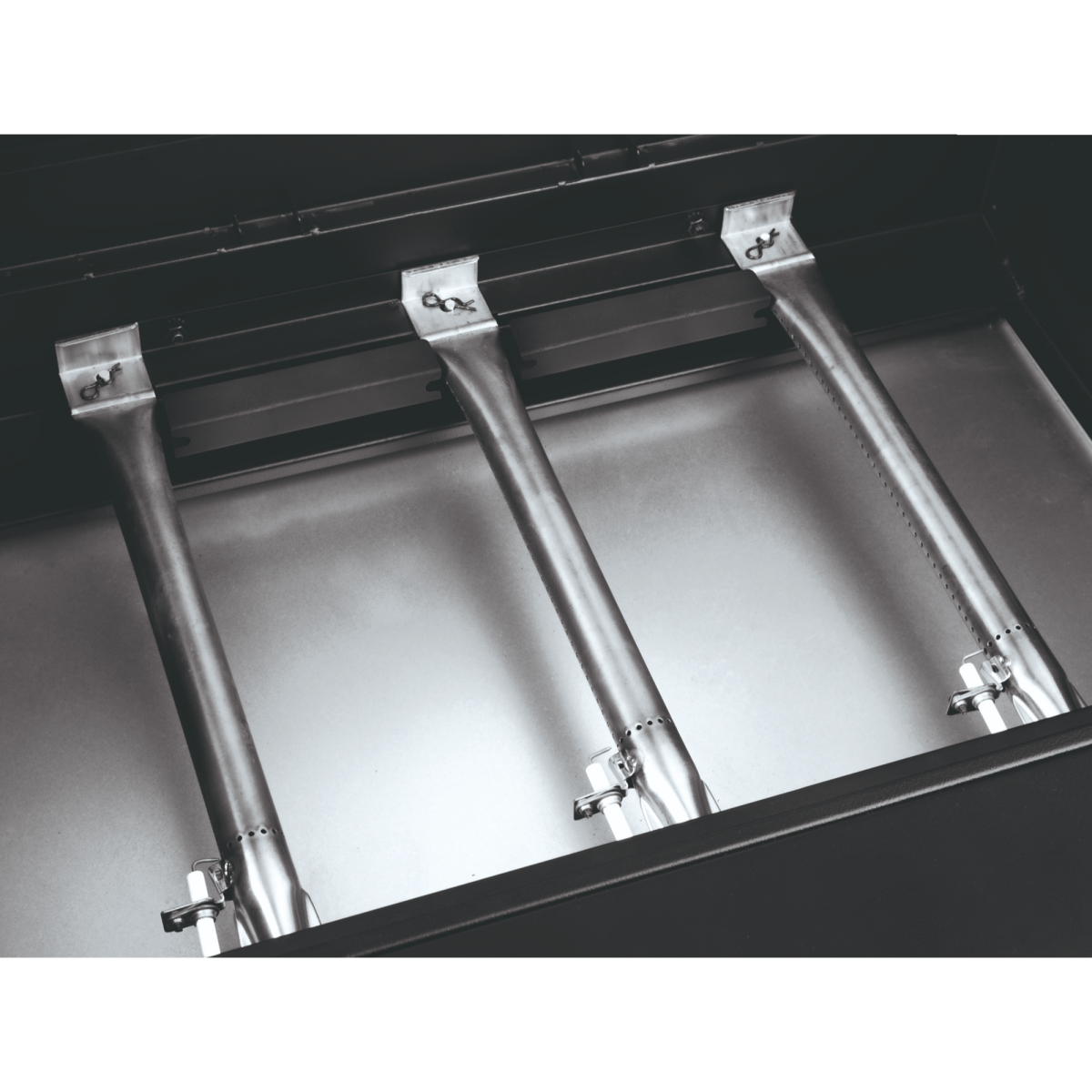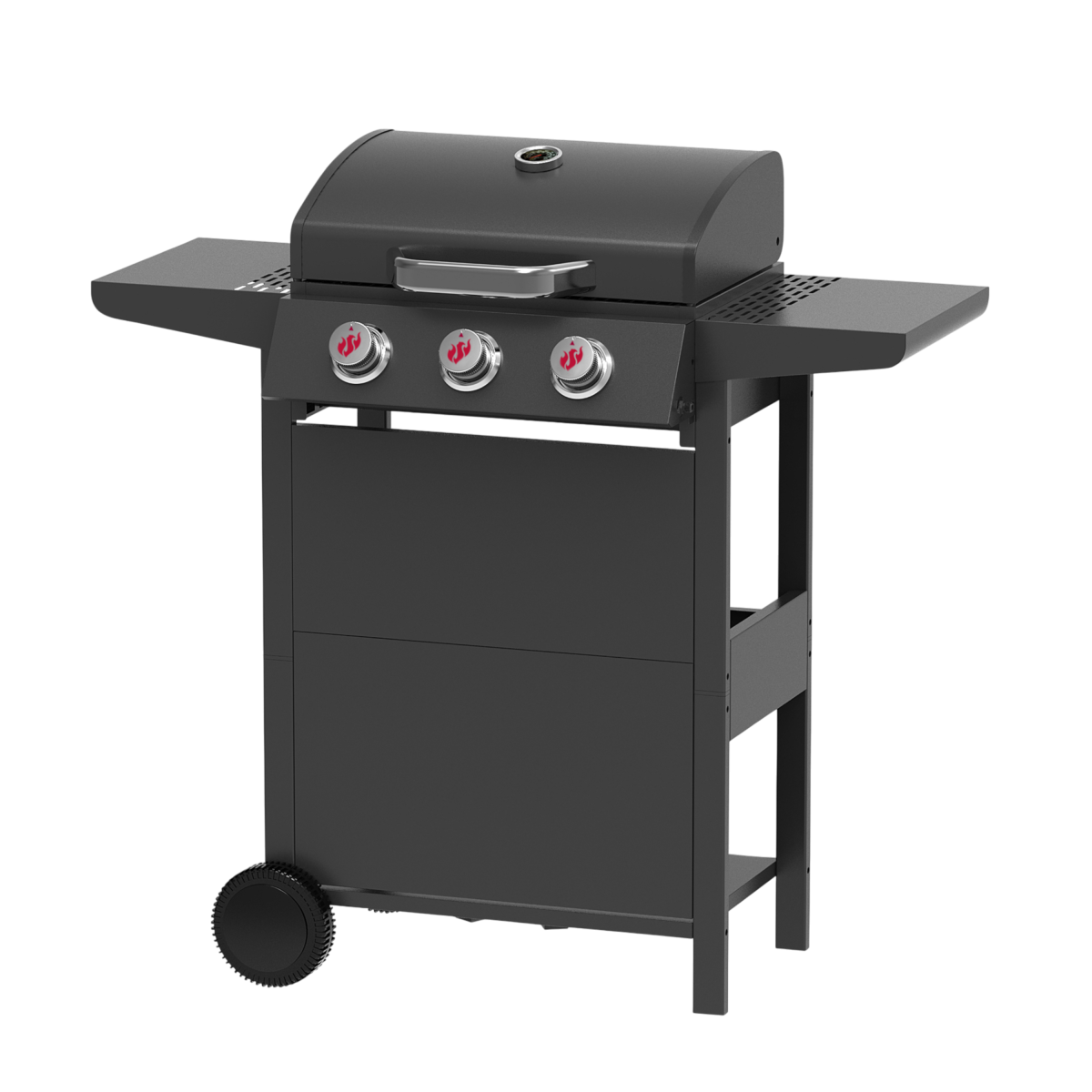 A Landmann 3.0 gázgrill három darab, fokozatmentesen állítható rozsdamentes acél égővel (3×5 kW) összesen 15 kW teljesítményt biztosít, így ideális választás akár 4–6 személy számára. A 50×33,5 cm-es, zománcozott öntöttvas grillrács jól tartja a hőt, míg a rozsdamentes acél melegítőrács a kész ételek melegen tartását segíti. A két oldalsó polc praktikus helyet kínál a grilltartozékoknak és hozzávalóknak, a zsírgyűjtő tálca pedig megkönnyíti a tisztítást. A 2 görgő és 2 láb egyszerre biztosítja a mobilitást és a stabil elhelyezést.