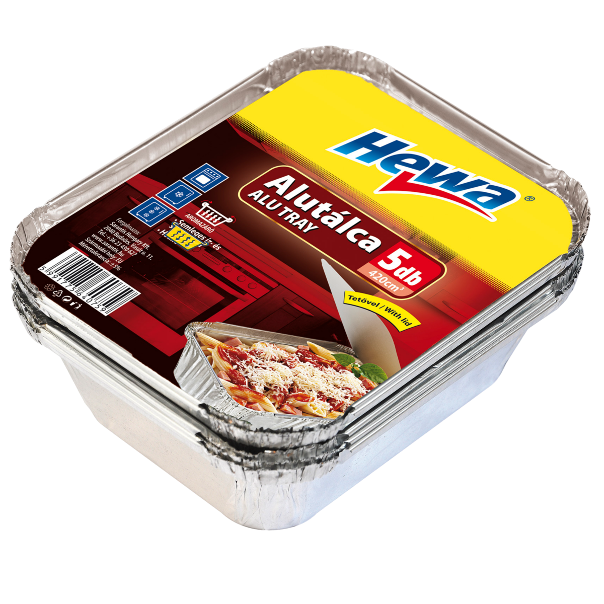 Hewa négyszögletes alutálca 420cm3, 5db-os + fedél - Grill