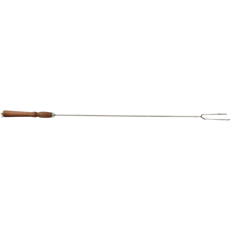 Tömör acélból készült rozsdamentes villás nyárs, 90cm hosszú. Tisztítása semleges folyékony mosogatószerrel javasolt! Kerülendő a karcosodást okozó szerek és eszközök használata! A villát úgy alakították ki, hogy végére könnyen feltűzhető legyen az étel, de az ne csússzon le róla sütés közben. A fa nyél végén található karika segítségével felakasztva is tárolható.