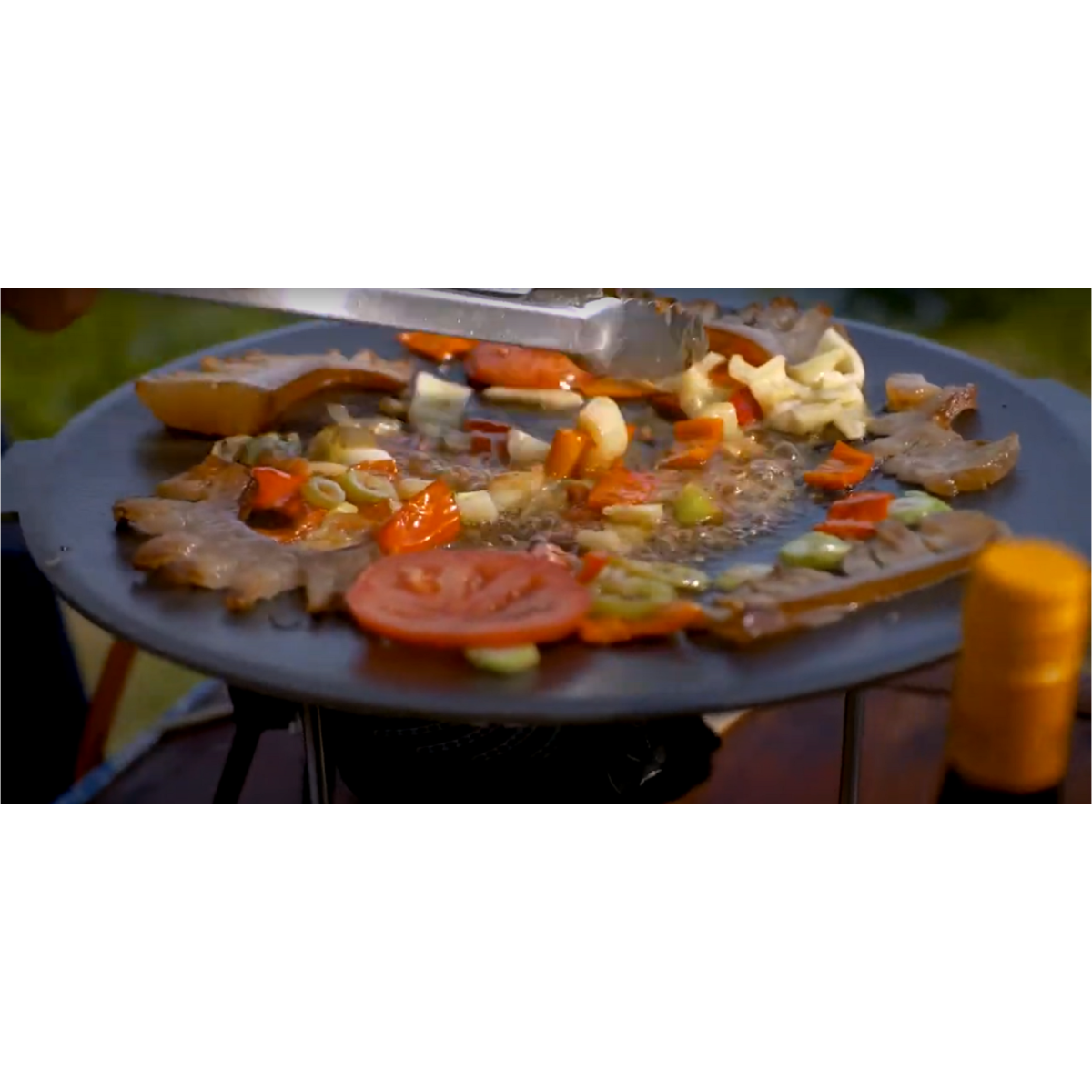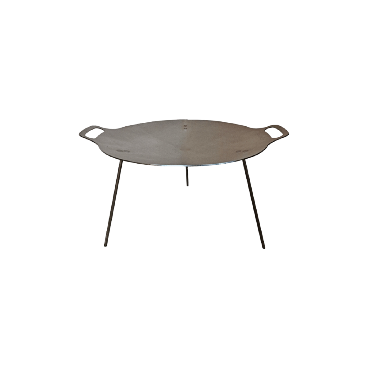 Vas tárcsa három lábbal. 60 cm átmérővel, füllel 67,3 cm. Használható húsok, halak, zöldségek és egyéb ételek