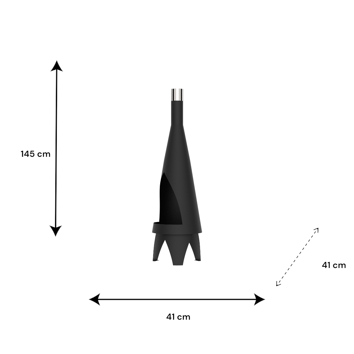 Az acél kerti tűzrakó 41 × 41 × 145 cm karcsú, álló kialakításával látványos és helytakarékos megoldást kínál kerti tűzrakáshoz. Egyszerű formavilága jól illeszkedik különböző kültéri környezetekbe, miközben kellemes hangulatot teremt esti összejövetelek alkalmával.