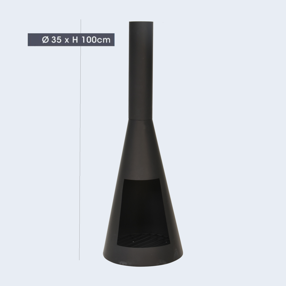 Kültéri fém tűzrakó kéménnyel, fekete színben, 30x30x100cm méretben, 1 mm vastagsággal. Kiváló eszköz a kertben való tűzrakásra, főként a hűvösebb időkben. Pattogó tüzével kellemes hangulatot teremt a kertben, ráadásul meleget is biztosít, így akár az esti összejövetelek kedvelt része is lehet.