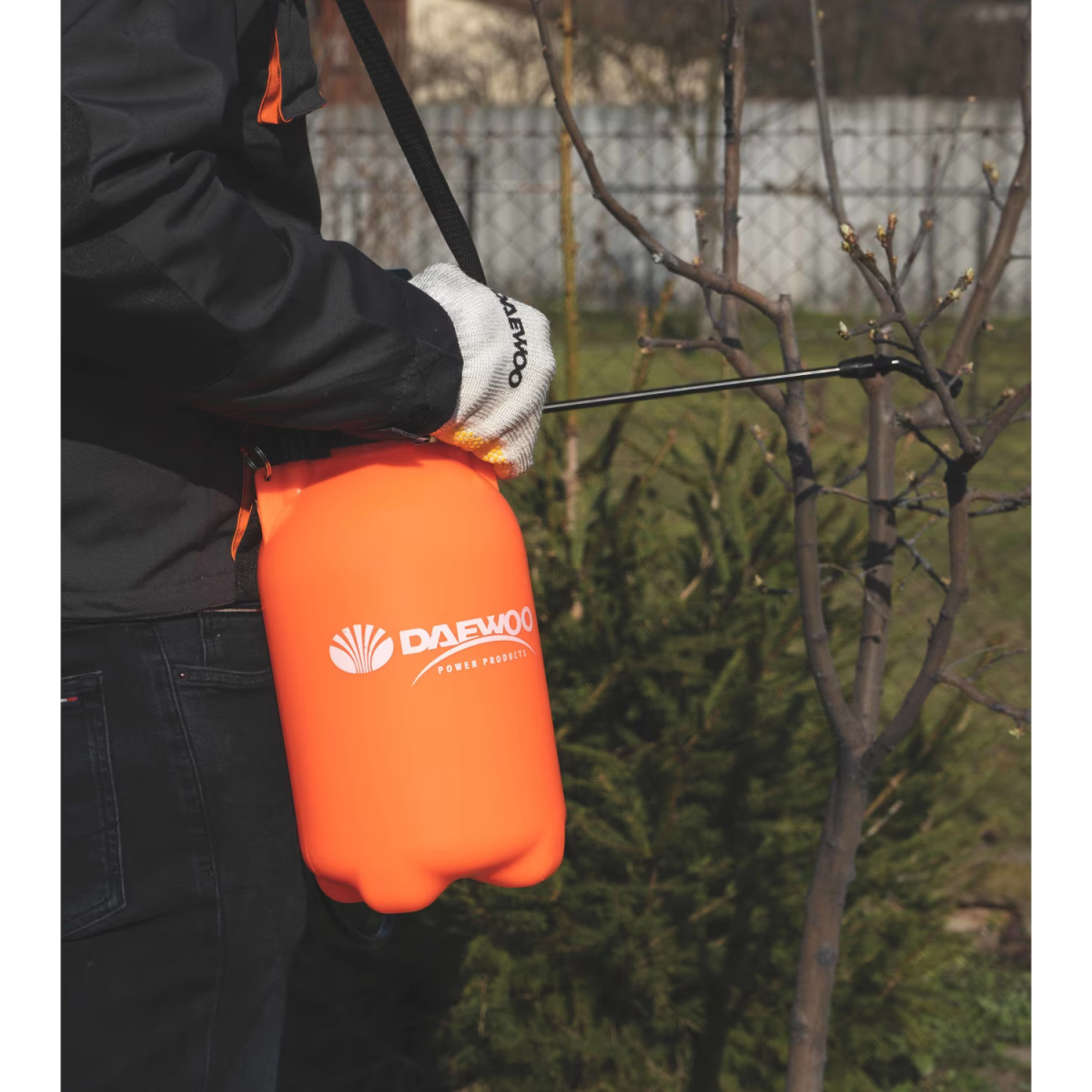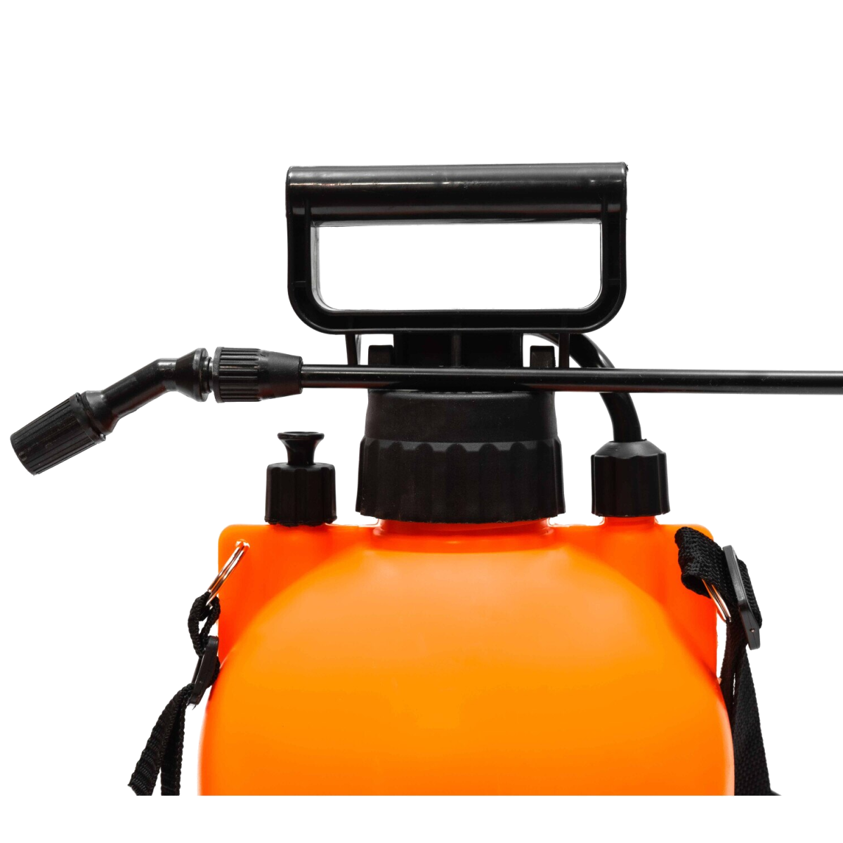 Műanyag permetező 5 literes tartállyal. A tömlő hossza 1,3 méter, amellyel könnyedén biztonságos távolságból permetezhet, erős szélben kerülje a permetezést.