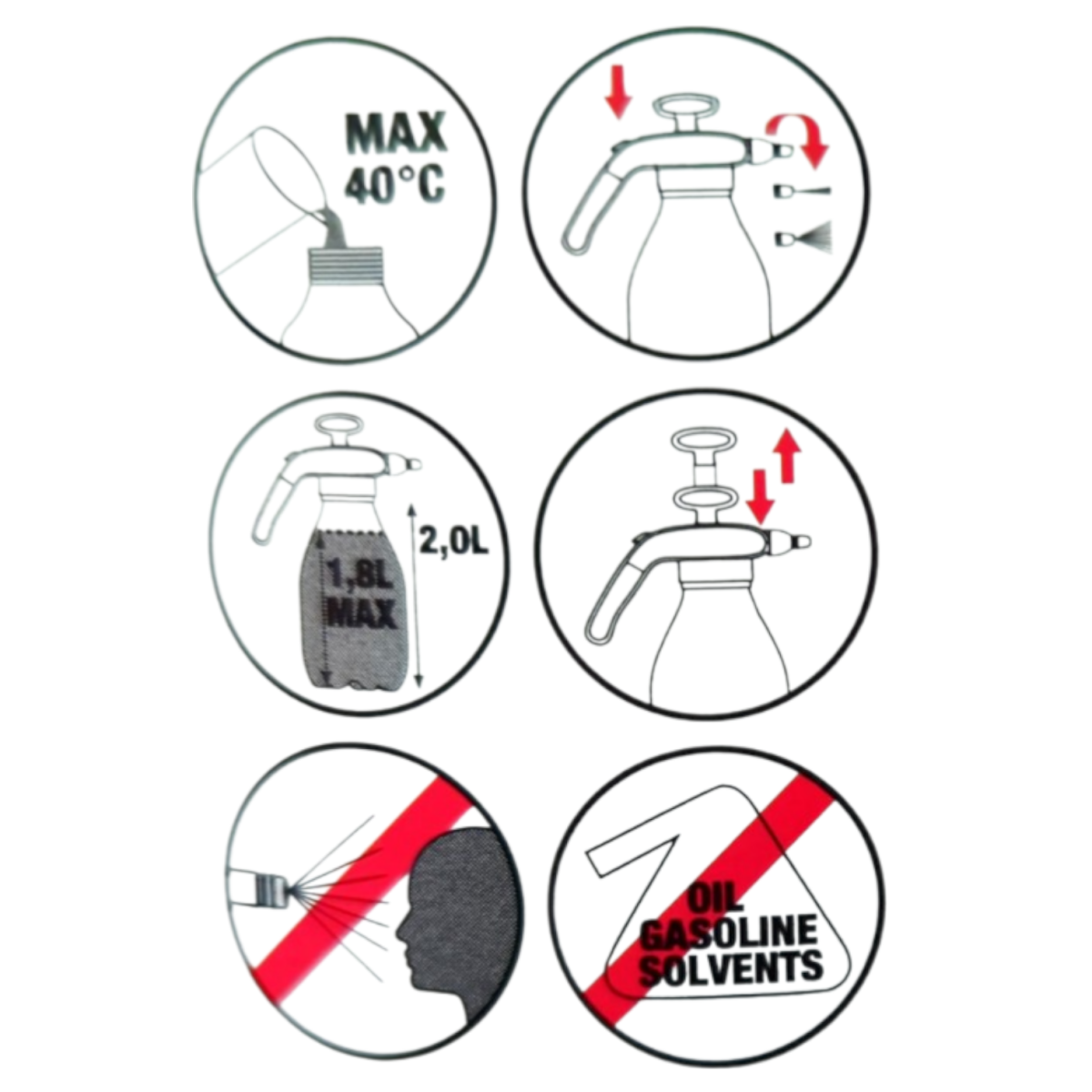 A praktikus méretű tartály könnyen újratölthető és szállítható, a kézi pumpával gyorsan nyomás alá helyezhető, a szórófej pedig finoman szabályozható.