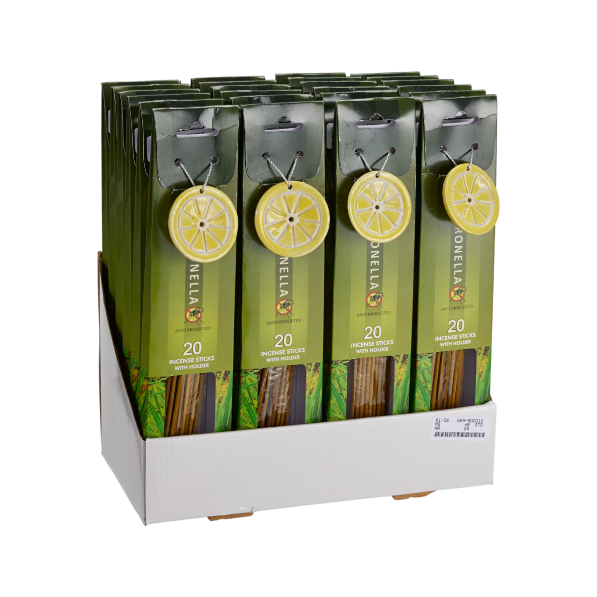 A citronella pálcák természetes illatukkal segítenek távol tartani a rovarokat kültéri használat során. A szett 20 darab, egyenként 10 cm hosszú füstölőrúd mellett egy citrom alakú kerámia tartót is tartalmaz. A pálcát egyszerűen a tartóba kell helyezni, majd meggyújtani – a lassan égő rúd folyamatosan füstölög, így alkalmas teraszokra, erkélyekre. Fontos: a füstölőtartót mindig hőálló felületre kell helyezni.