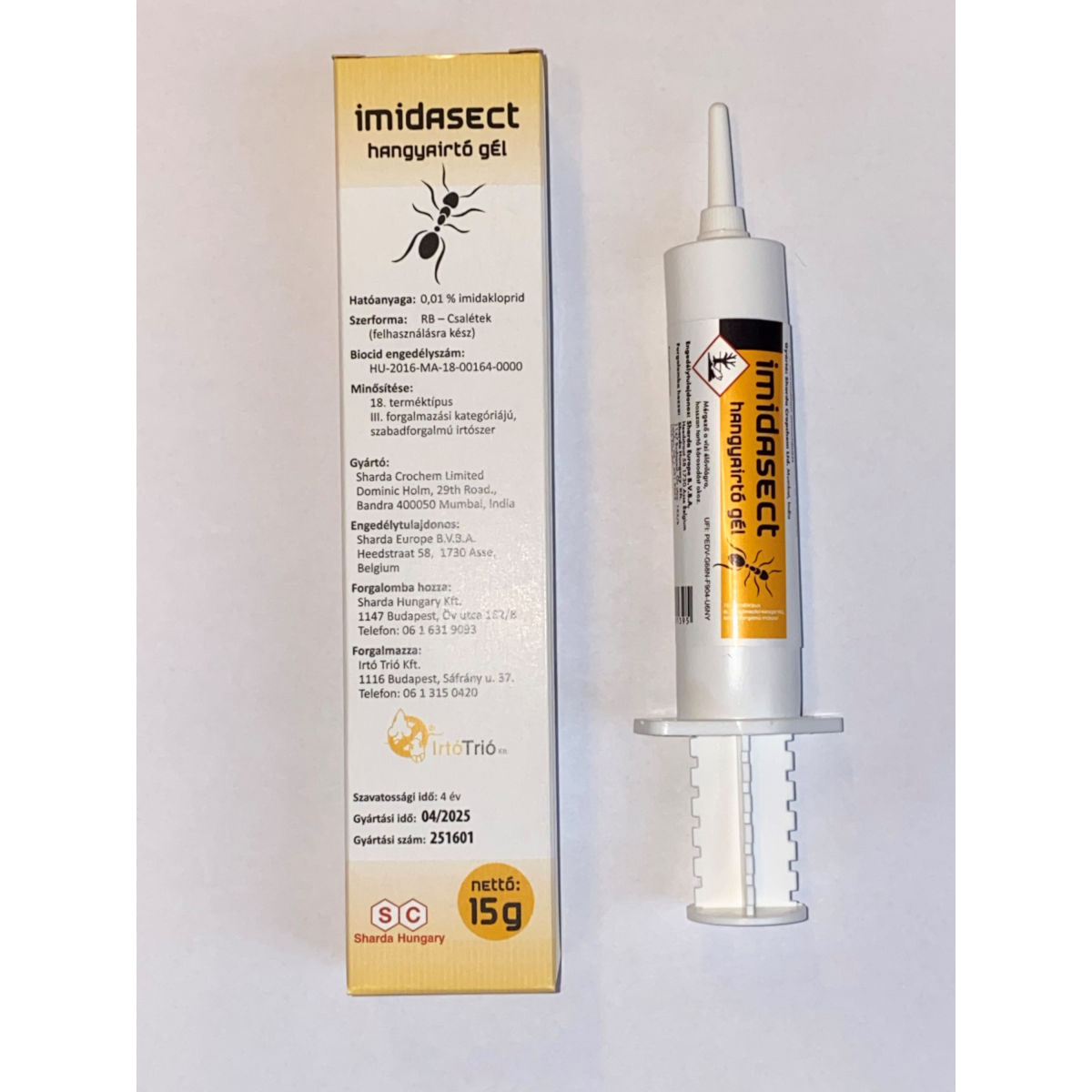 Az Imidasect hangyairtó gél hatékony megoldás a háztartásban megjelenő hangyák ellen. Praktikus, kinyomós kiszerelése lehetővé teszi a szer pontos adagolását nehezen hozzáférhető helyekre is. A benne található vonzó csalogatóanyag miatt a hangyák gyorsan felveszik, majd behordják a bolyba, ahol a hatóanyag néhány órán belül kifejti hatását.