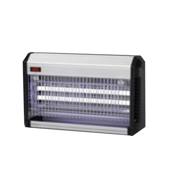 Elektromos rovarcsapda, alumínium (elektroforézis), kizárólag beltéri használatra, 100m2 munkaterületre. pcionálisan falra/ mennyezetre szerelhető vagy szabadon álló helyzetben használható. Felfüggesztési lánccal ellátott, ki/bekapcsoló gombbal és levehető rovargyűjtő tálcával.
