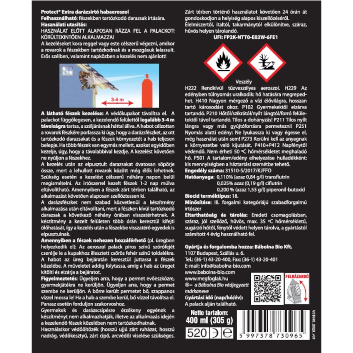 Felhasználható a fészekben tartózkodó darazsak irtására. A védőkupakot távolítsa el. A palackot függőlegesen, a kezelendő felülettől legalább 3-4 m távolságra tartsa, a széljárásnak háttal állva. Azonnali és tartós hatás 8 méterre is. A habot célzottan a rovarok fészkére porlassza ki úgy, hogy a darázsfészket, az ott tartózkodó darazsakat és a fészek környezetét a hab teljesen belepje. Ha több fészek van egymás mellett, azokat egyidőben kezelje, és a távolabbival kezdje. A kezelést követően ne nyúljon a fészekhez. A kezeléseket kora reggel vagy este célszerű végezni, amikor a rovarok a fészekben tartózkodnak és a mozgásuk lelassult. Erős szélben, valamint napközben a kezelés nem ajánlott.
