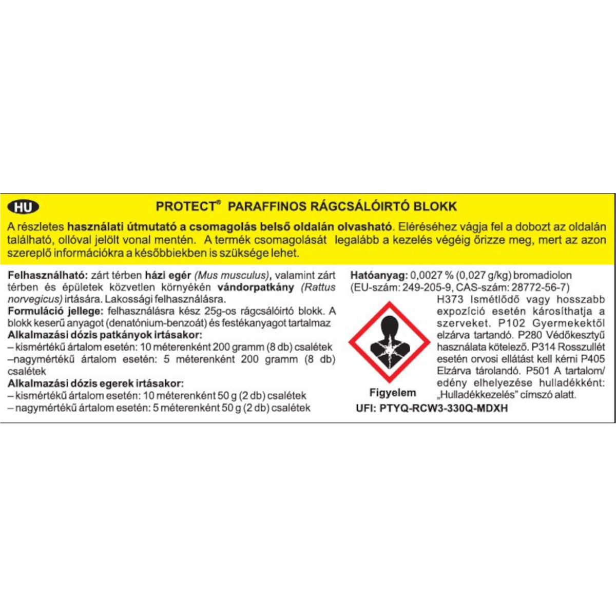 A blokk keserű anyagot (denatónium-benzoát) tartalmaz, amely segít megelőzni a készítmény ember általi véletlen fogyasztását. Az irtószer kizárólag zárt, felnyitás ellen védett etetődobozban helyezhető ki! Egy etetőládába az alkalmazási dózisnak megfelelő maximum mennyiség kerülhet. Lakossági alkalmazásra való. A készítményt olyan helyeken alkalmazza, ahol patkányok, egerek előfordulása észlelhető. A rágcsálók jelenlétére jellegzetes nyomaikból (fészkek, lyukak, vonulási utak, ürülék, stb.) vagy a rágásuk okozta károkból következtethet.