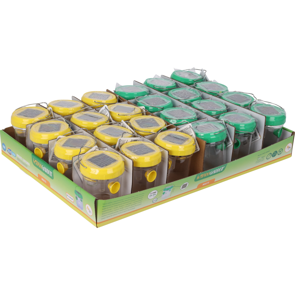 A napelemes rovarcsapda praktikus megoldás a kertben vagy teraszon a rovarok fogságba ejtésére. Az eszköz 2 féle színben érhető el, 9x7 cm-es méretben, 1x lila LED fényforrással és amorf napelemmel működik, amely környezetbarát és energiatakarékos.