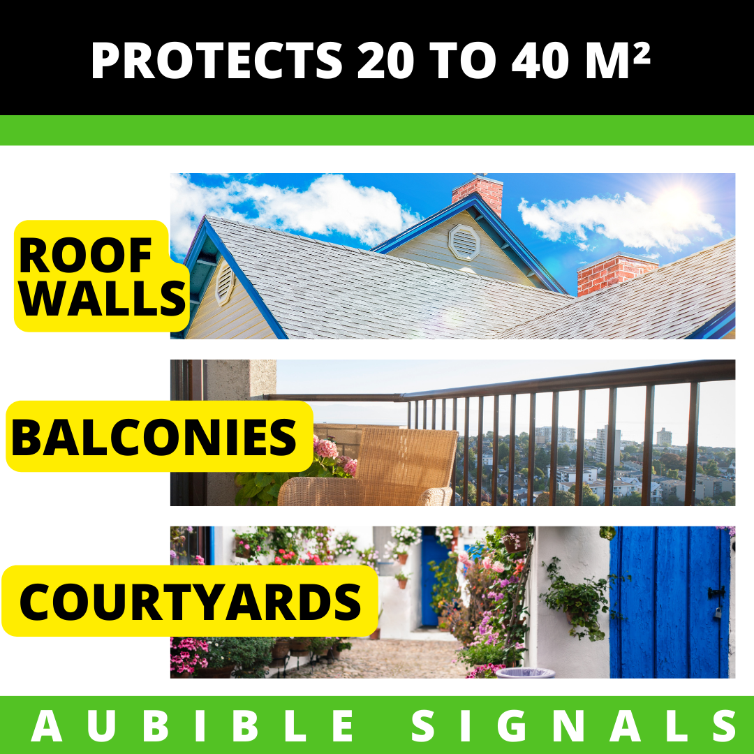 ✅ 20–40 m² lefedettség – hatékony madárriasztás