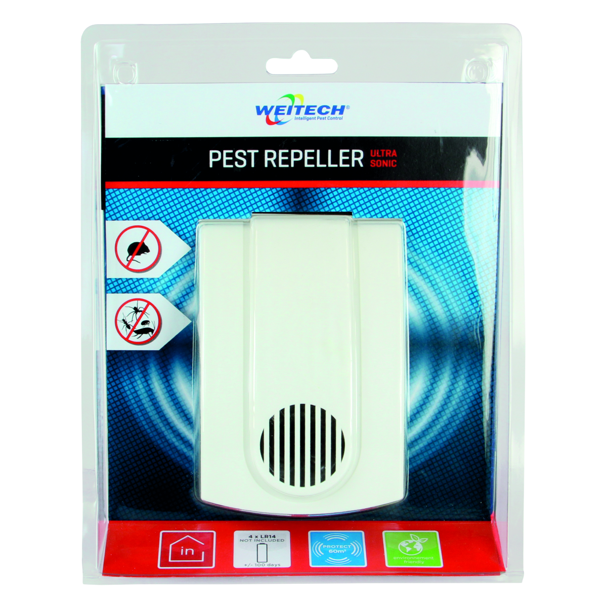 A Weitech WK0240 ultrahangos kártevőriasztó magas frekvenciájú (20 000–45 000 Hz) ultrahangokat bocsát ki, amelyek az emberek számára nem hallhatók, de a rágcsálók és a legtöbb rovar érzékeli őket. A készülék intenzív hanghatása 72 óra elteltével fejti ki jól érzékelhető riasztó hatását.