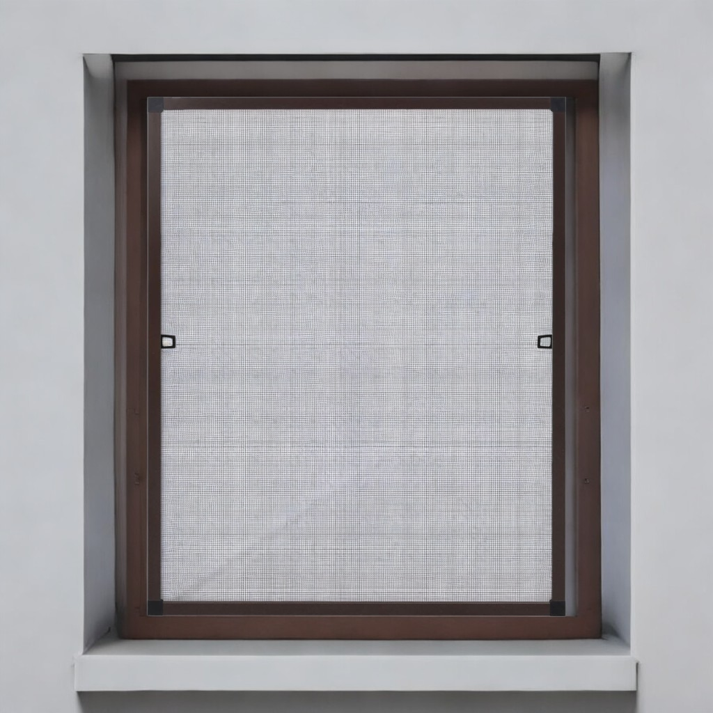 Fix keretes szúnyogháló ablakra, barna színben, melynek mérete 150x150 cm.