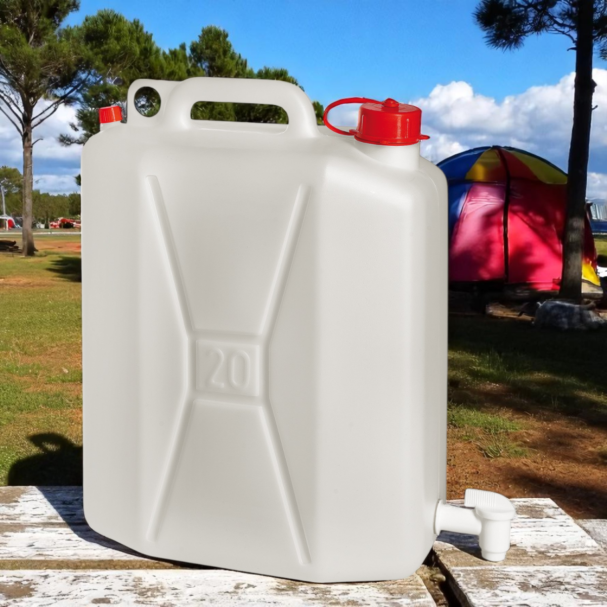 Vízkaniszter 20 literes. Csappal és csavaros zárral. A vízkanszter kiváló választás, ha víz tárolására vagy szállítására van szükség. 20 literes műanyag kanna csappal: Ha nagyobb mennyiségű vizet szeretnél tárolni vagy szállítani, akkor a 20 literes változat lehet a megfelelő választás.