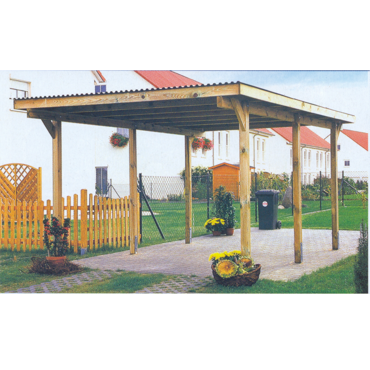 CARPOT autóbeálló. Tetőfedésre alkalmas anyagokat nem tartalmaz! Tájékoztató jellegű fotó! 268 x 400 cm, magasság: 210 cm, tető 9 x 9 cm-es tartóoszlopokkal.