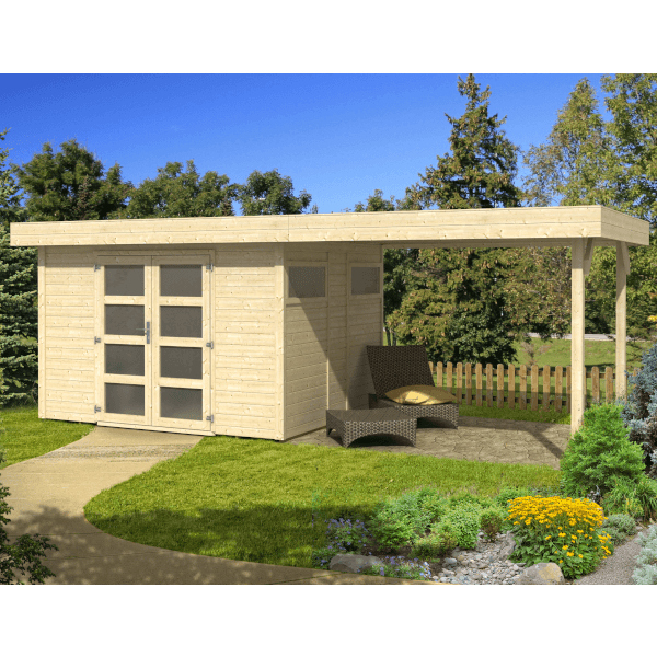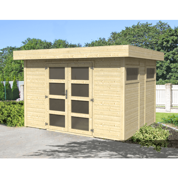 Kerti faház panelos szerkezettel, anyaga natúr lucfenyő, kétszárnyú ajtóval, fix bevilágító panelokkal a nyílászárókban 2mm-es opál plexivel, padlóval, a tető és padlódeszkák nút-féderes illesztéssel 15mm vastagságúak, padlózat alatt kb. 60cm-ként impregnált párnafa alátámasztás, tetőn kátránypapír borítás. Összeszereléshez szükséges kötőanyagok, zárak vasalatok az egységcsomagban. A hozzátartozó oldaltető a 333242-es cikkszámon érhető el. Falvastagság: 19mm, előfal magasság: 214cm, hátfal magasság: 208cm. Mérete (fal külső síkja): 303x245cm, ajtó mérete (átjárhatóság): 175x138cm.