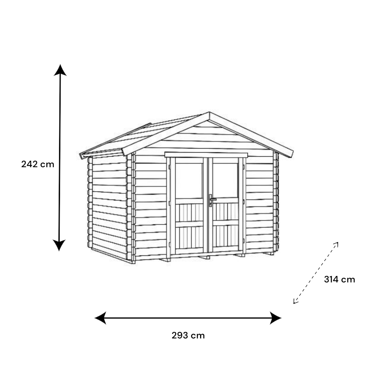 ✅ Tágas alapterület: ~7,56 m² (275×275 cm) – Ez a faház hasznos területe.