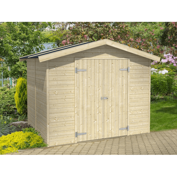 Kerti szerszámtároló faház paneles szerkezettel, anyaga natúr lucfenyő, kétszárnyú ajtóval, padlóval, a tető és padlódeszkák nút-féderes illesztéssel 15mm vastagságúak, padlózat alatt kb. 60cm-ként impregnált párnafa alátámasztás, tetőn kátránypapír borítás. Összeszereléshez szükséges kötőanyagok, zárak vasalatok az egységcsomagban. Falvastagság: 13,5mm, gerinc magasság: 218cm, oldalmagasság: 182cm. Mérete (fal külső síkja): 243x176cm, ajtó mérete (átjárhatóság): 175x120cm.