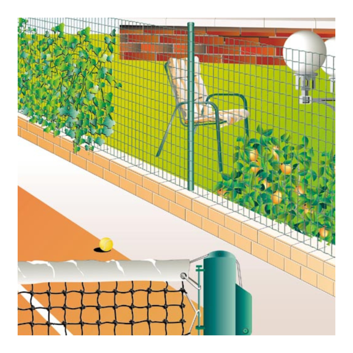 Esztétikus, zöld színű, PVC-bevonatú, ponthegesztett drótháló téglalap lyukosztással. A galvanizált (horganyzott) alap és a külső műanyagbevonat együtt ellenállóbb felületet ad kerti felhasználásokhoz.