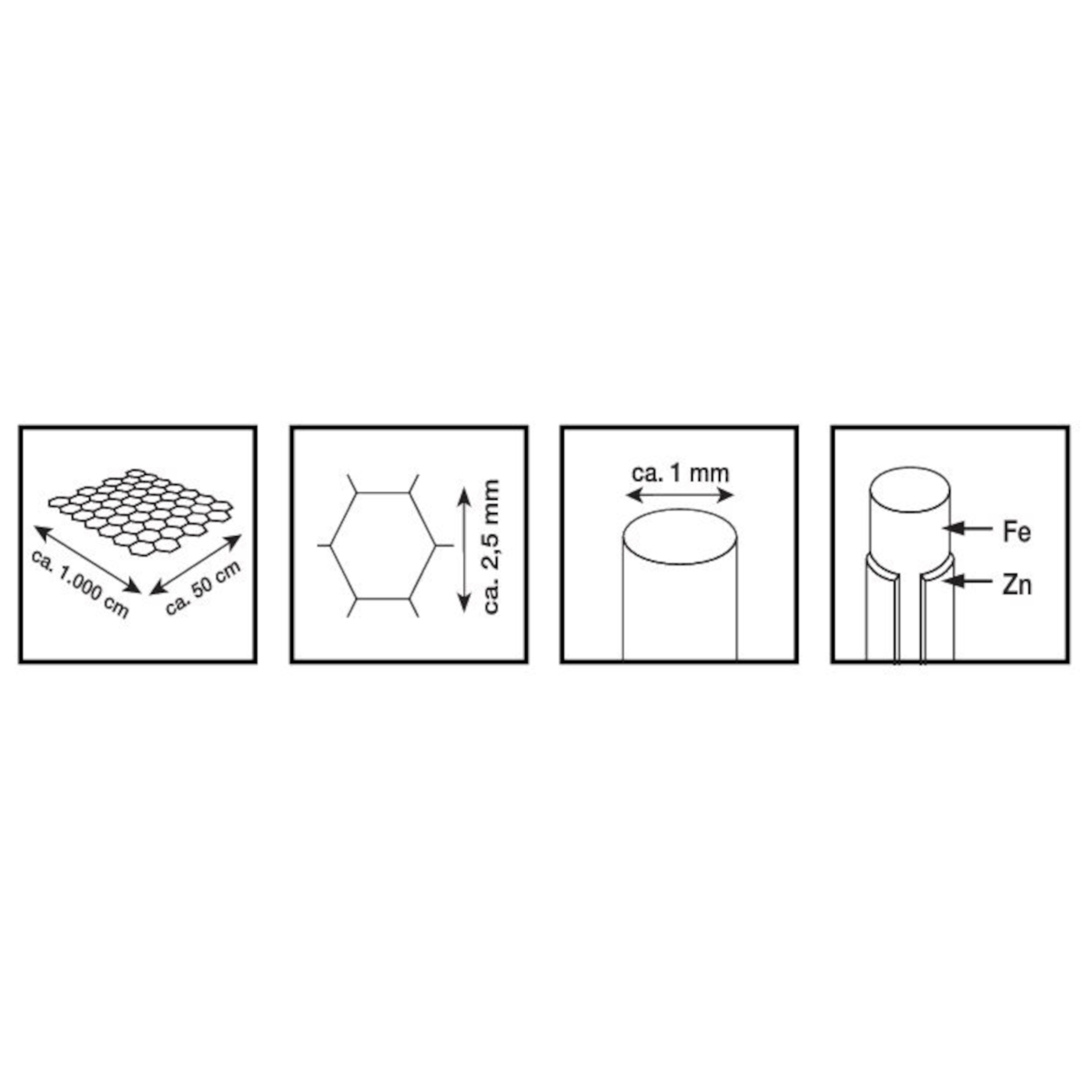 Hatszögletű fonatolt huzalháló horganyzott bevonattal, 0,5x10 m méretben. A huzal átmérője 1 mm. A hatszögletű fonatok magassága kb. 2,5 cm.Ezzel a hálóval elkeríthetjük akár veteményesünket, de bármely más területet is körbe határolhatunk.