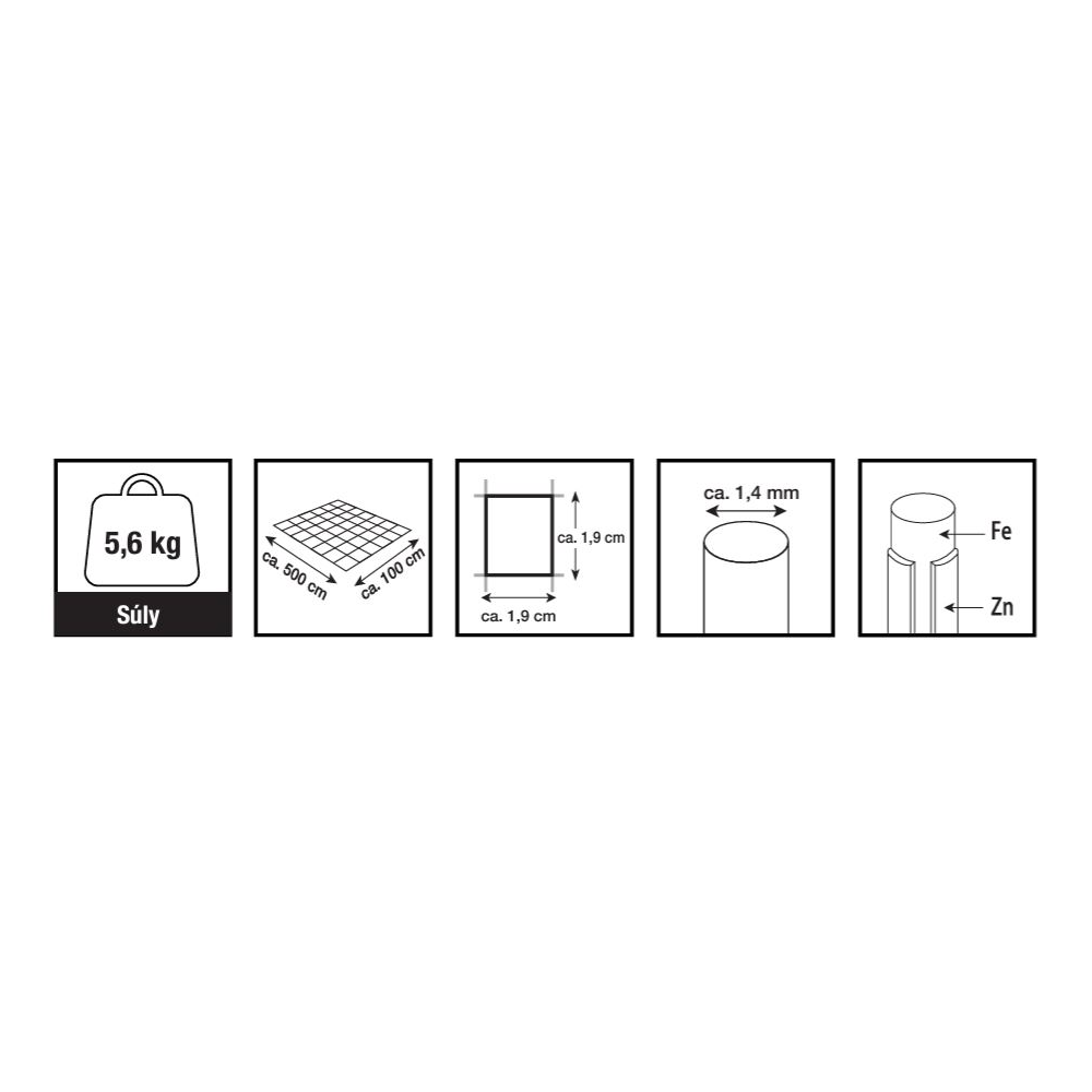 Hegesztett háló horganyzott bevonattal, 500x100 cm méretben; huzal átmérő: 1,4 mm;