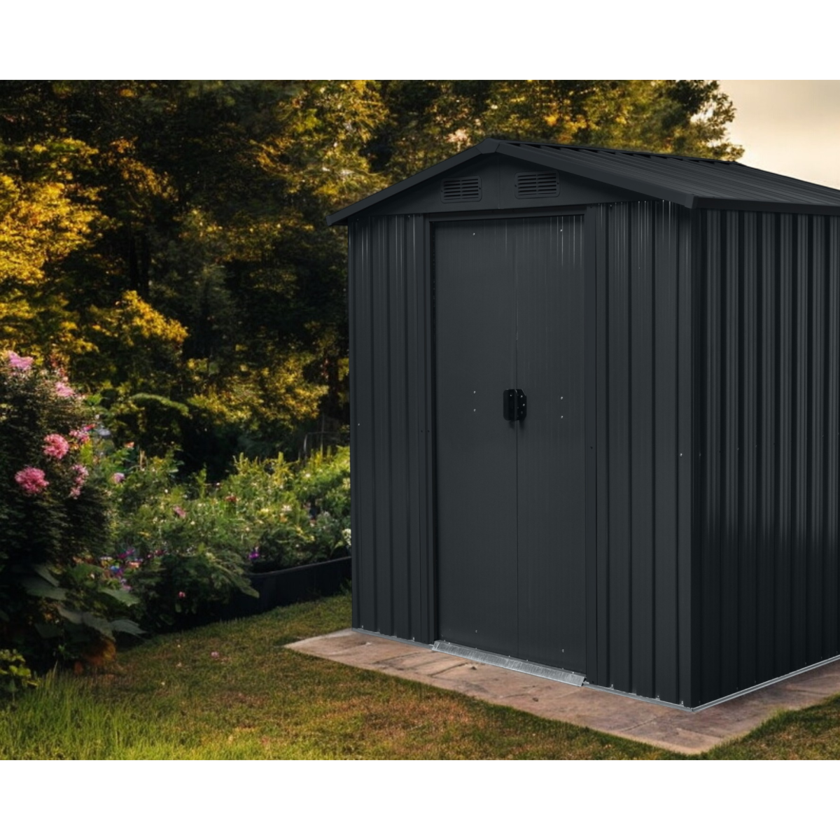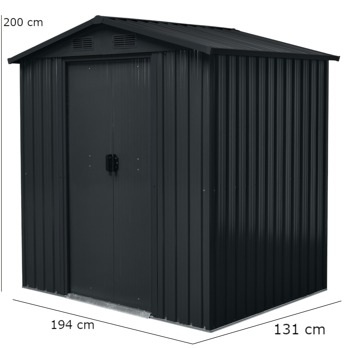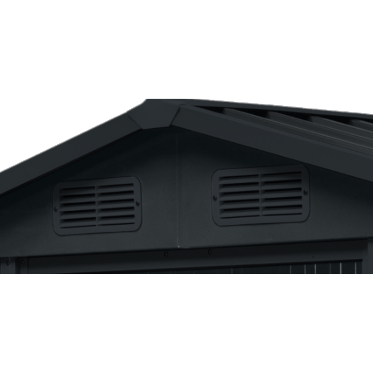 Ez az antracit színű 200x194x131cm-es fém szerszámosház ideális választás, ha rendezett módon szeretnél kerti szerszámokat, gépeket vagy egyéb eszközöket tárolni. Festett horganyzott acéllemezből készült, így bizonyos mértékben ellenáll a kültéri hatásoknak. A négy szellőzőnyílás biztosítja a megfelelő légáramlást, míg a helytakarékos tolóajtó kényelmes hozzáférést tesz lehetővé.