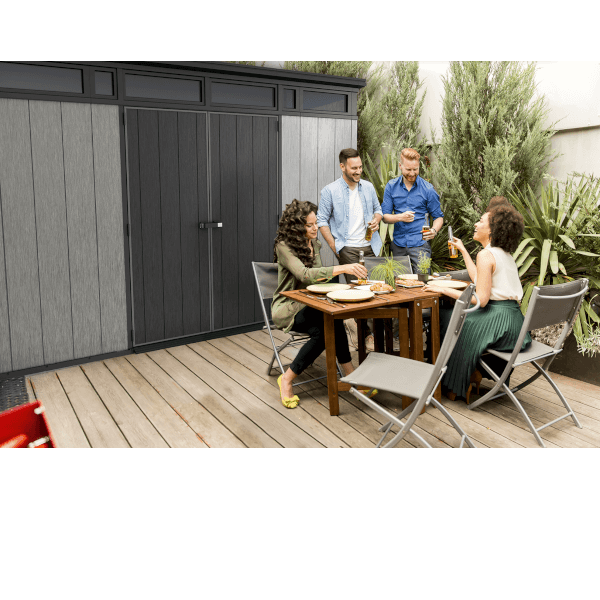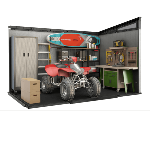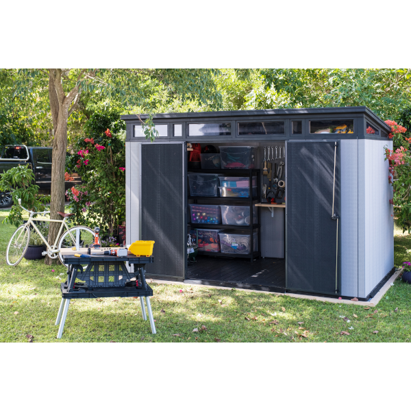 A kivételesen tágas ARTISAN 11x7 szerszámos ház tökéletes megoldás mindazok számára, akik stílusos és funkcionális szerszámos kerti házat keresnek. A nagy belső tér tovább alakítható polcok, kampók és akasztók rögzítésével. Alkalmas különböző nagy méretű tartozékok és készülékek tárolására is. A DUOTECH kettős falpanelek a kedvezőtlen légköri feltételekkel szemben magas ellenálló képességgel rendelkeznek. Az acéllal speciálisan megerősített tető 200 kg/m2-es hóterhelést bír. Nagy előnye az, hogy a ház tetszőleges színre lefesthető, így megjelenését mindenki a saját ízlésének megfelelően alakíthatja.