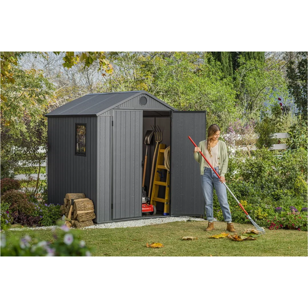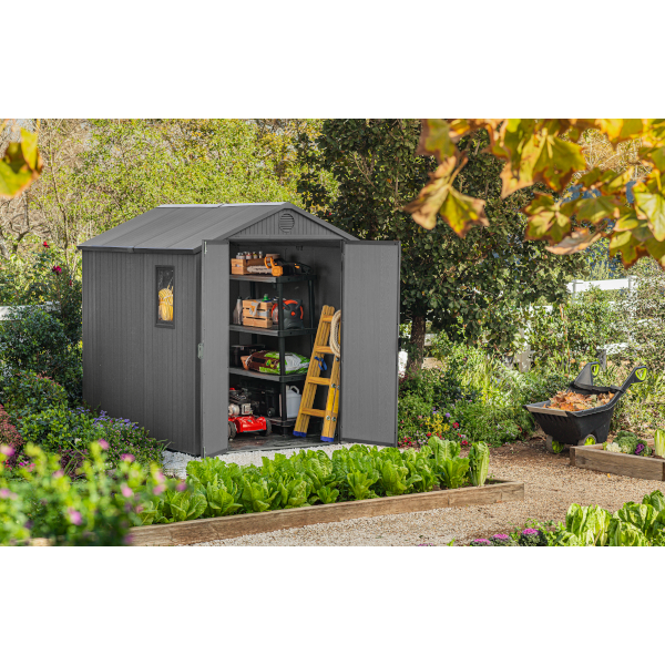 A Darwin mindennel rendelkezik, amivel egy kerti szerszámos háznak rendelkeznie kell. Az anyaga, bár kinézetében és tapintásában valódi fára emlékeztet, olyan tulajdonságokkal bír, mely más anyaghoz nem hasonlítható. Az általunk kidolgozott kompozit Evotech anyagnak köszönhetően a Darwin ház nem szorul karbantartásra - nem rozsdásodik, nem hámlik, nem korhad. Speciális, kompakt módon csomagolt, ezért elfér az autó csomagtartójában is. A horonyillesztéses technikának köszönhetően az összeszerelés egyszerű - nincsen szükség semmilyen speciális szerszámra. Ez azt jelenti, hogy nem több, mint két óra alatt összeszerelheti a szerszámos házát, mely eredeti formájában sok éven keresztül fog szolgálni.