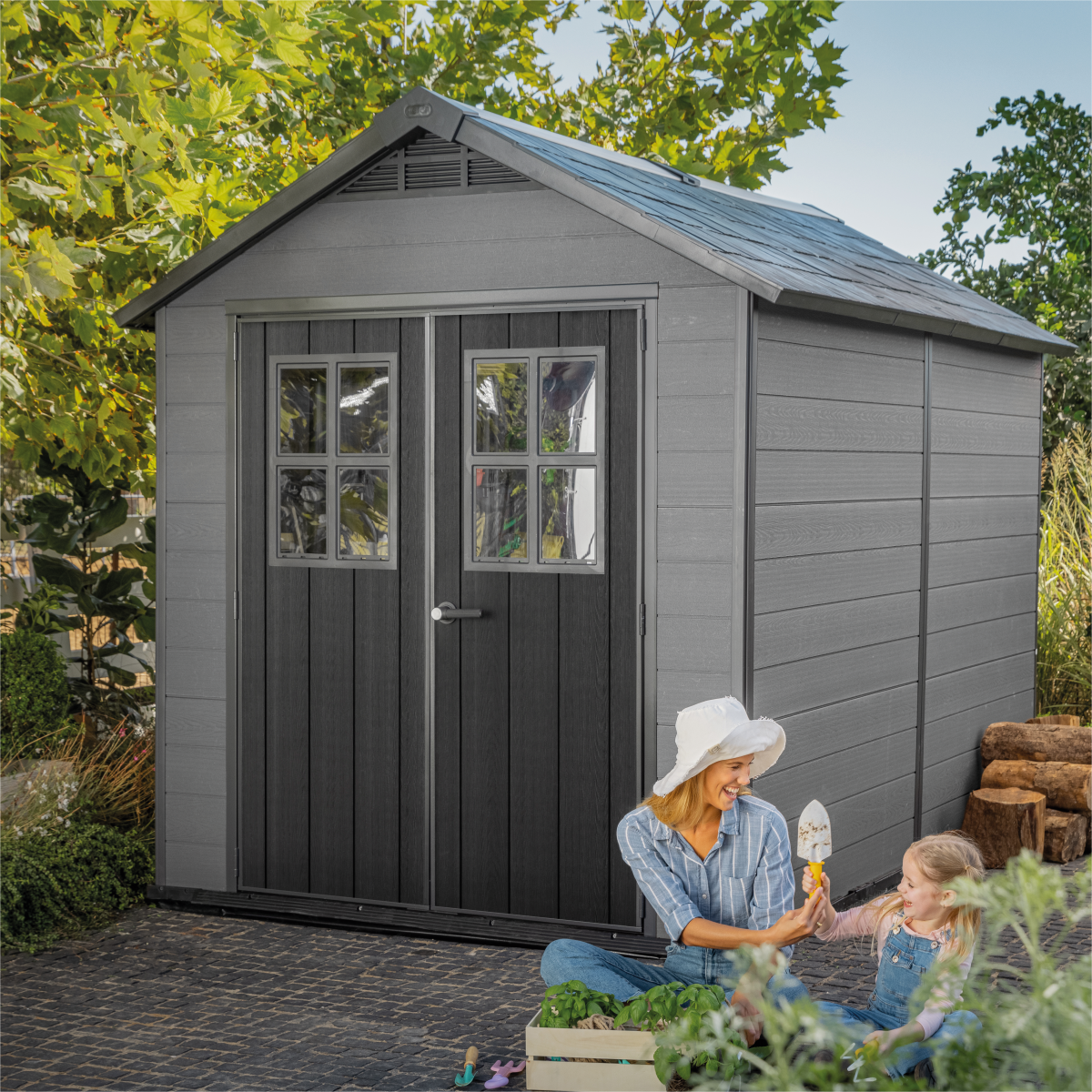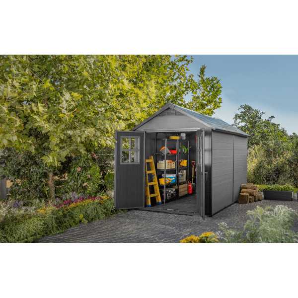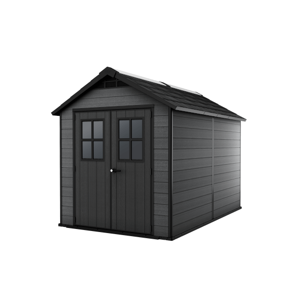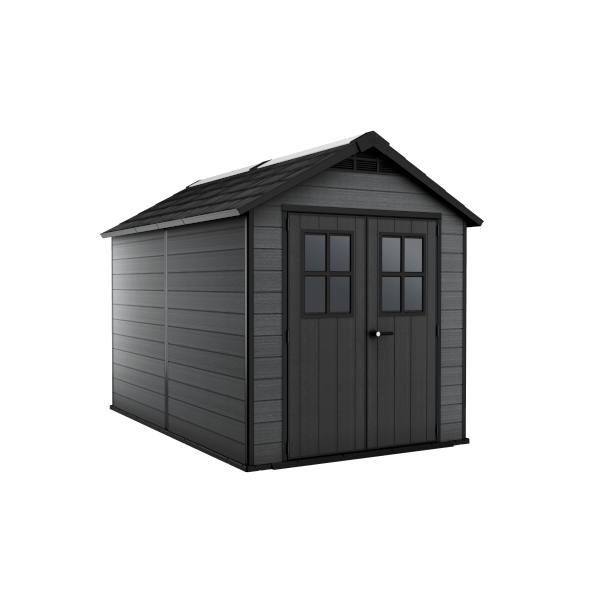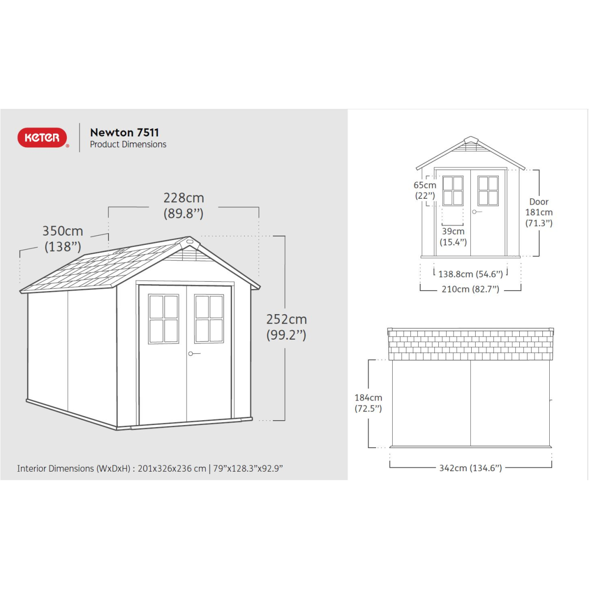 A nagy Newton 7511 szerszámos ház az elegancia és a funkcionalitás ötvözése, klasszikus külső és korszerű technológia találkozása. Kinézetében és tapintásában egy természetes fából készült házat imitál és a legkorszerűbb Evotech+ anyagoknak köszönhetően fala rendkívül tartós, ellenáll minden időjárási viszontagságnak és nem igényel karbantartást. Az eredmény egy olyan ház, mely nem rozsdásodik, nem hámlik, nem korhad. A megerősített szerkezetnek köszönhetően a ház vihart és havazást kibír, óvja a szerszámokat, a bútorokat és a berendezéseket a külső tényezőktől. A tartós padló biztonságos nyújt a fűnyírónak a sártól és az esővíztől. A nagy ablakok, az egész hosszban beépített fénycső és a beépített szellőző megfelelő fényt és légmozgást biztosít - ilyen körülmények között nyugodtan lehet foglalkozni a barkács munkálatokkal. A ház alapozási méretei 210 cm x 342 cm. A ház mérete (tető túlnyúlással): 228 cm x 350 cm x 252 cm.