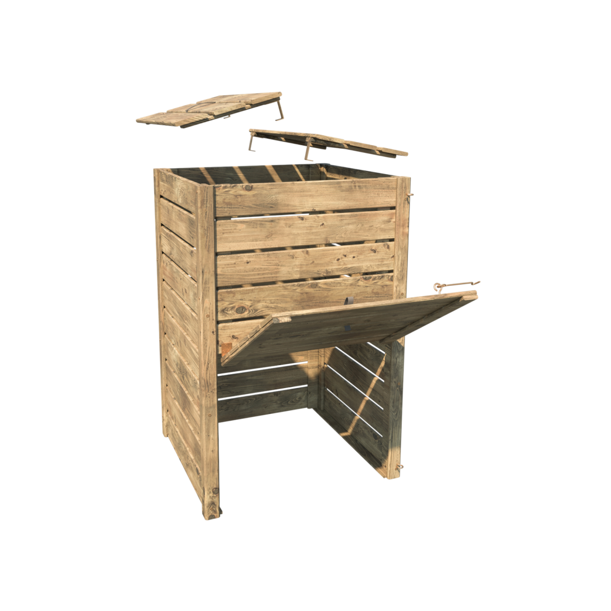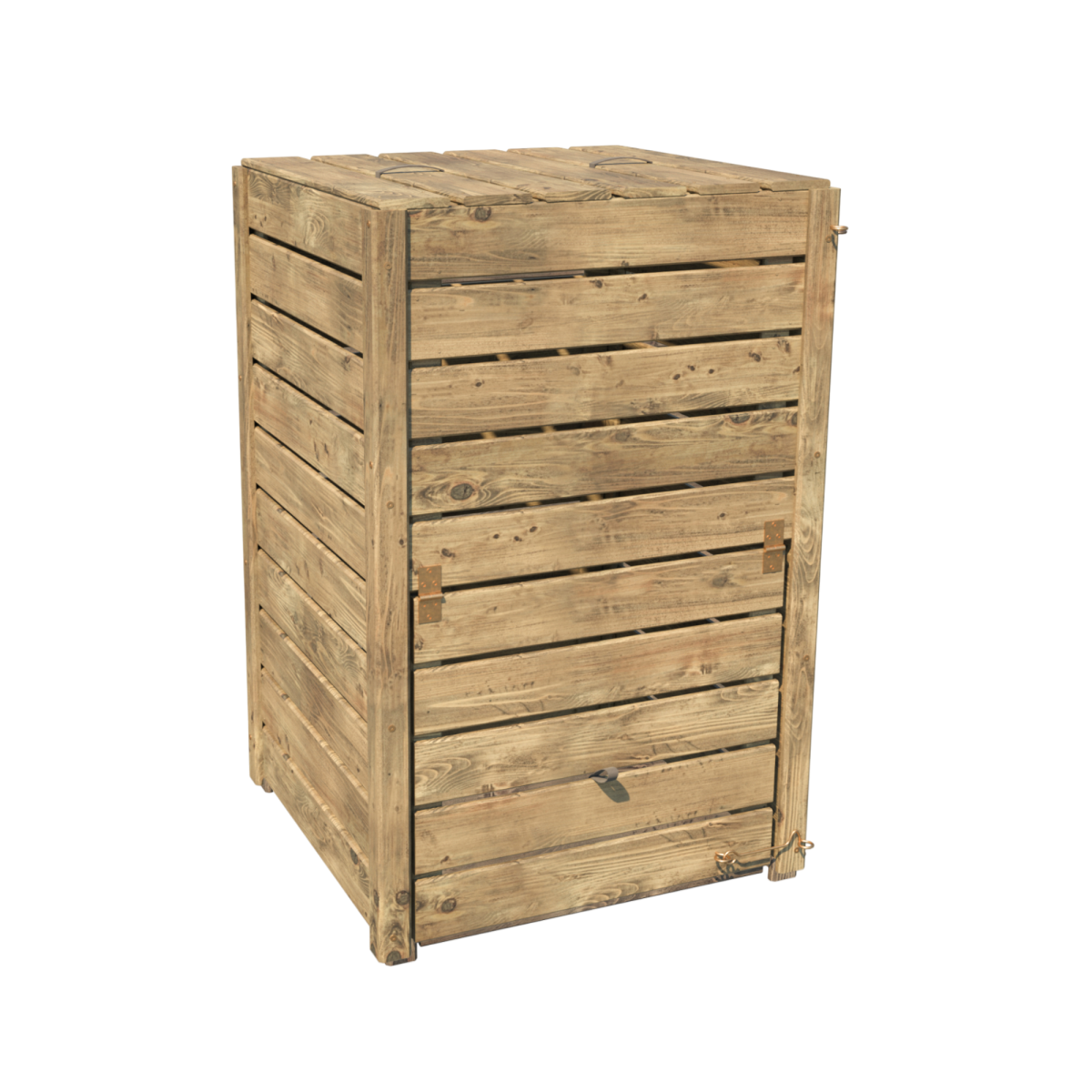 A Converto komposztáló 350 literes űrtartalmával ideális választás kerti növényi hulladék, fűnyesedék vagy konyhai zöldhulladék komposztálásához. Erdei fenyőből készült, amelyet zöld autoklávos kezeléssel tettek ellenállóbbá az időjárással és a kártevőkkel szemben. Az előre összeszerelt panelek gyors telepítést tesznek lehetővé, míg a praktikus fedél és rögzítőkampó megkönnyítik a mindennapi használatot.