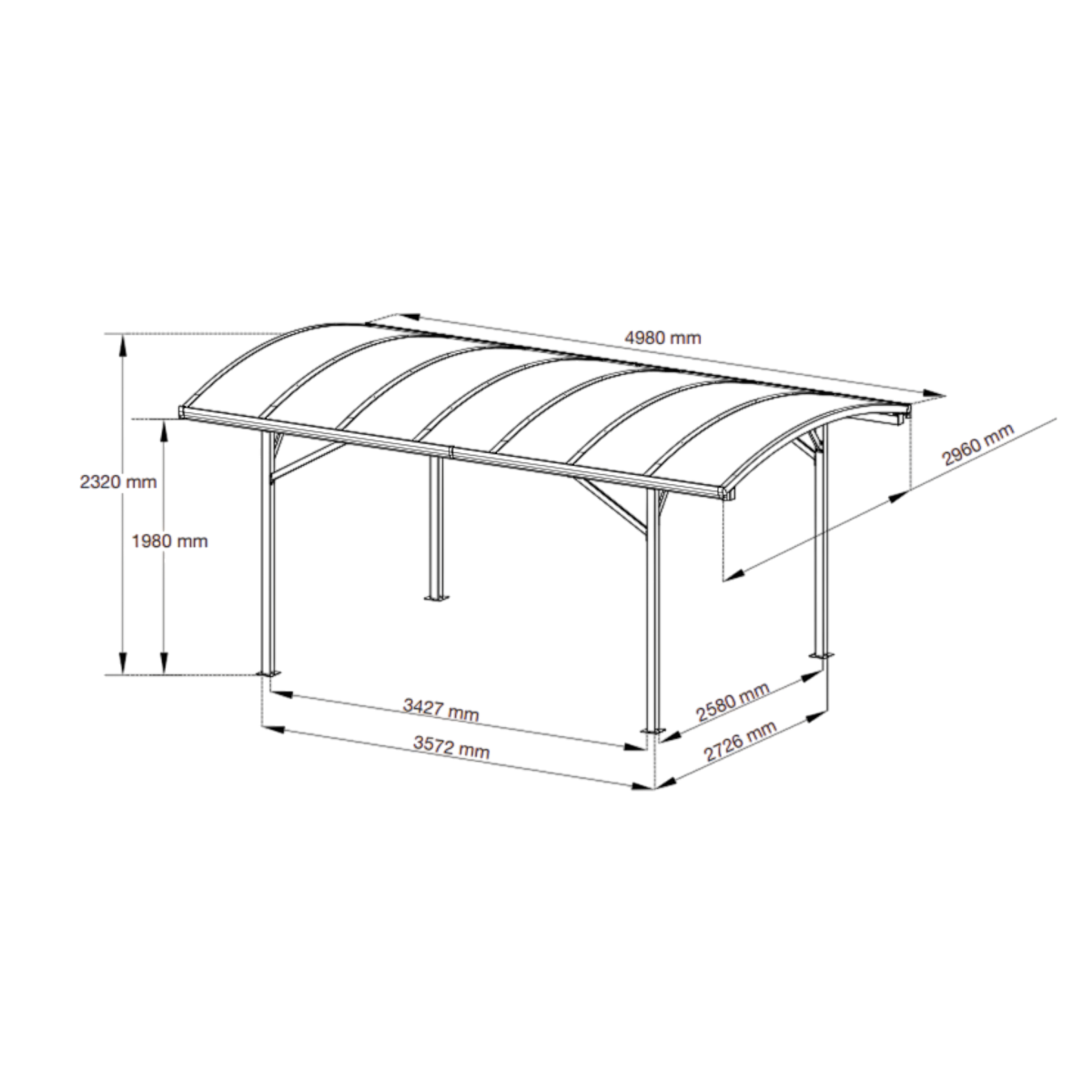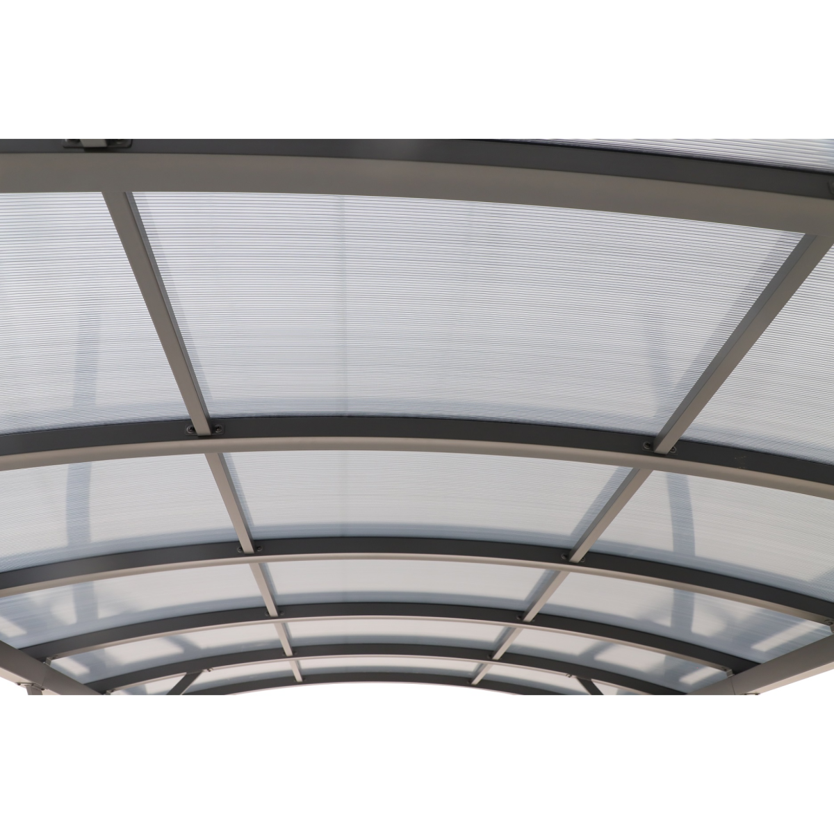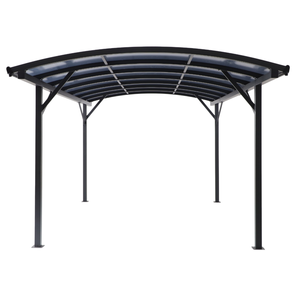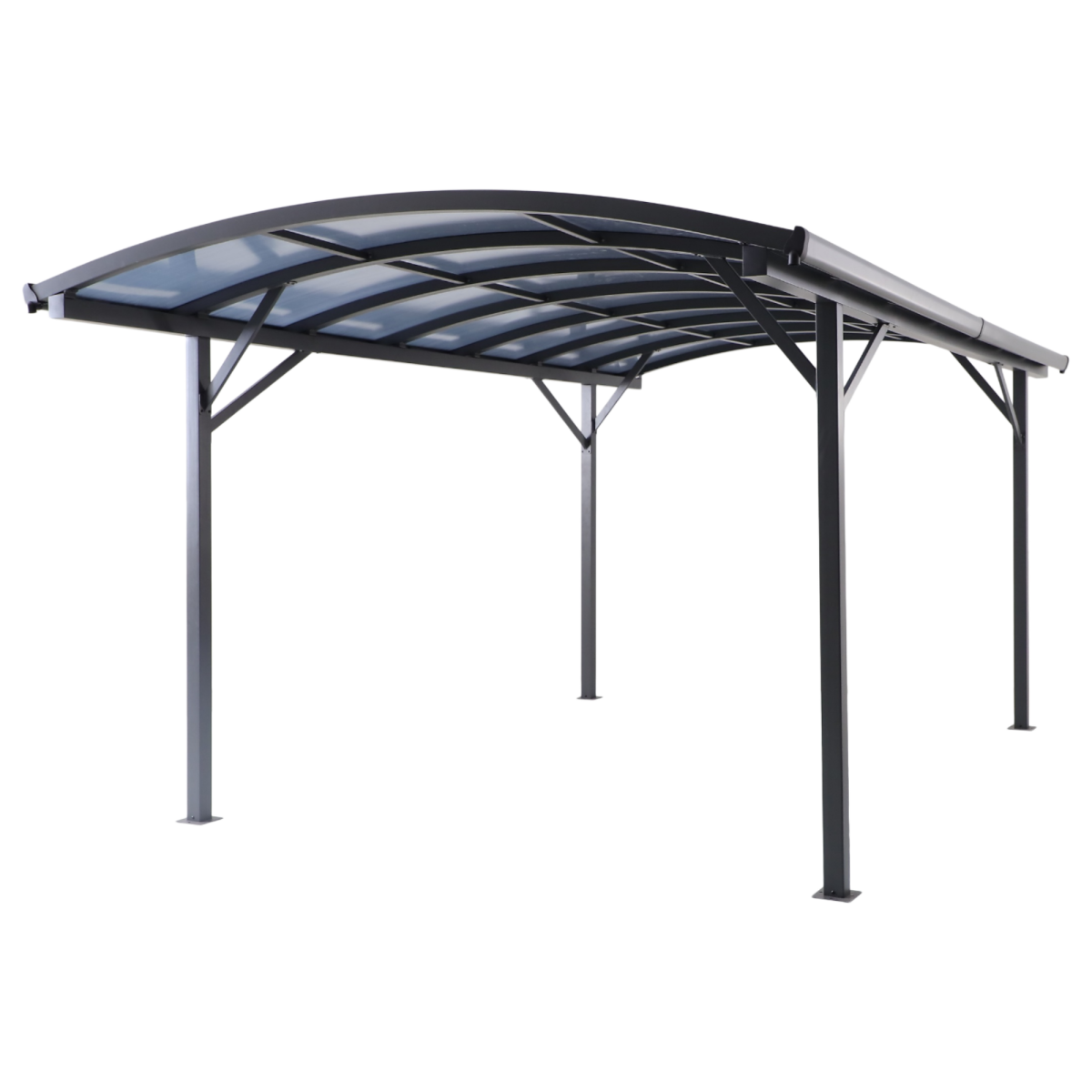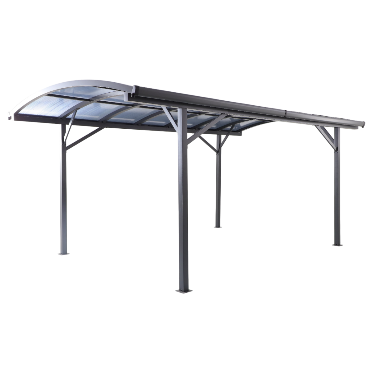 Ez a nagyméretű, fémvázas kocsibeálló praktikus megoldást nyújt gépjármű védelmére az időjárás hatásaival szemben. A stabil porfestett acél tartószerkezet és az alumínium keret megbízható alapot biztosít, míg a polikarbonát tetőfedés védelmet nyújt csapadék és napsugárzás ellen. Kialakítása alkalmas családi házak udvarába, kerti beállókhoz vagy fedett parkolóként történő használatra.