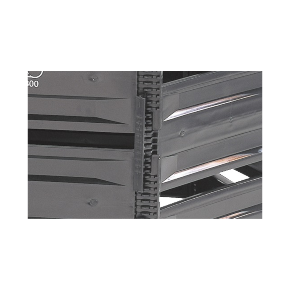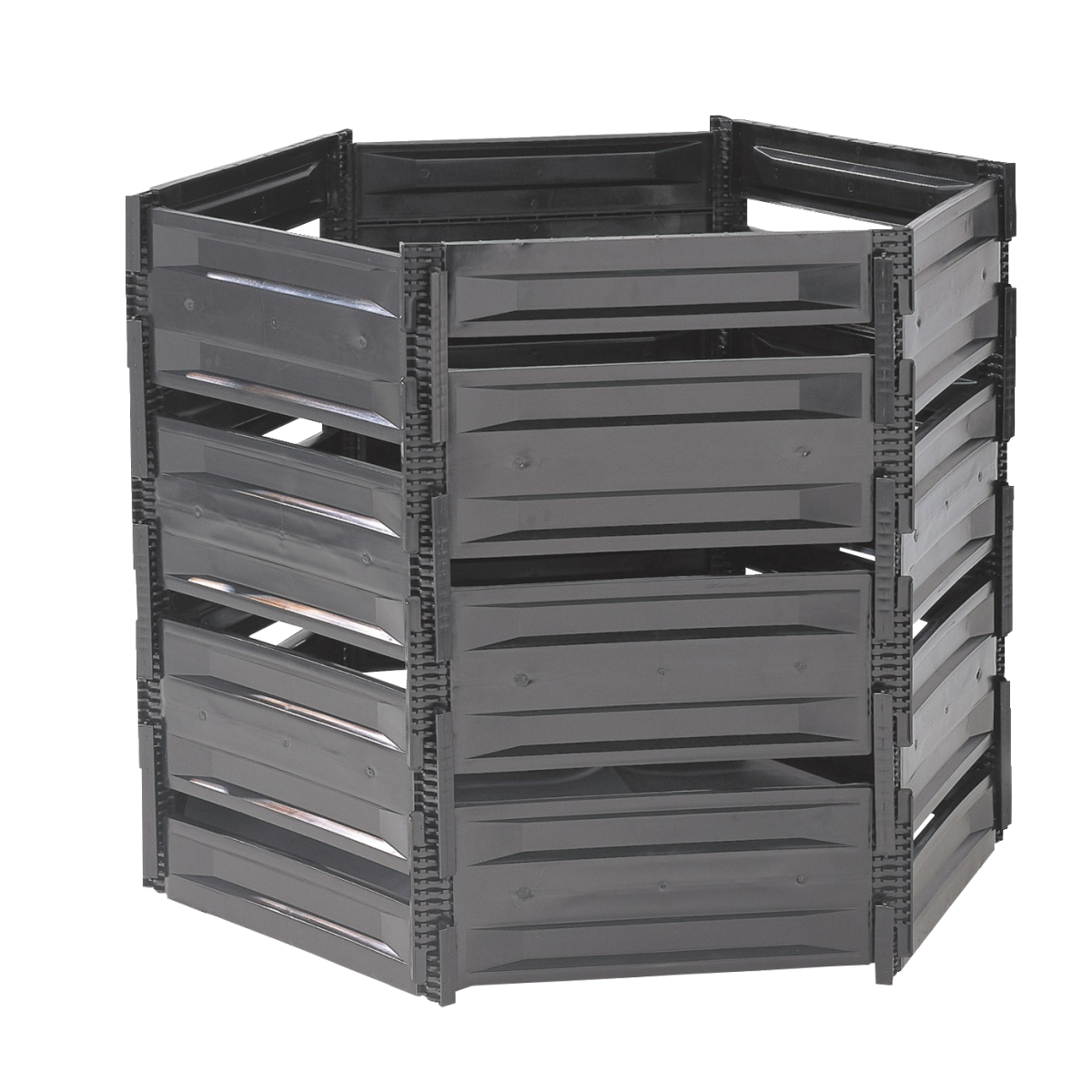 Nyitott komposztsiló, ideális közepes és nagy kertekhez. Egyszerűen összerakható és szétszedhető összecsúsztatható rendszer, ezáltal helytakarékosan szállítható. Az oldalán található szellőztető nyílások a levegő és a nedvesség keringtetését teszik lehetővé. Környezetbarát, újrahasznosítható műanyagból gyártva.