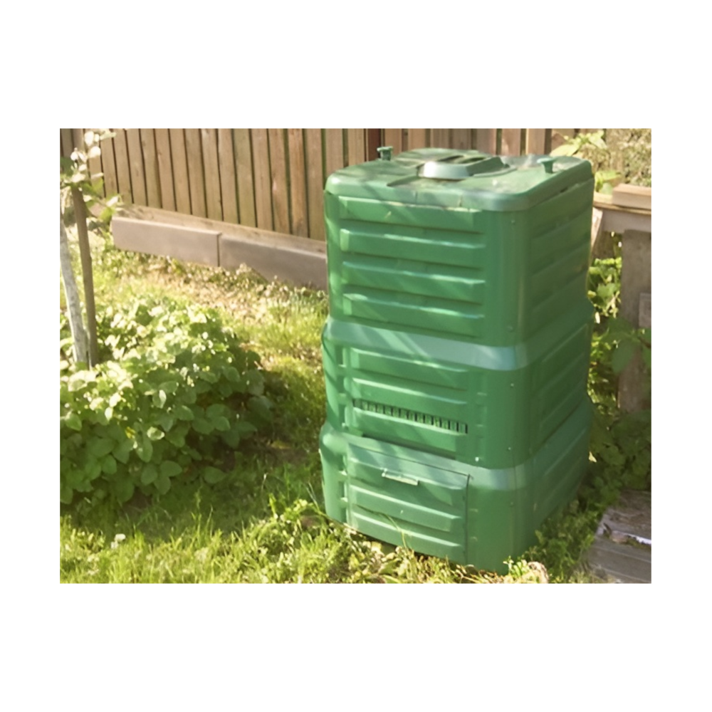 Új piramis formájú komposztsiló, amely ideális közepes kertekbe. Szerkezete kialakításának köszönhetően a levegő és nedvesség cirkulációja oldalanként megoldott. A tető integrált levegőztető rendszerrel van kialakítva (nyári/téli üzem). Könnyen összeszerelhető. Az elkészült komposzt két nyíláson keresztül üríthető. Környezetbarát, 100%-ban újrahasznosított műanyagból készült.