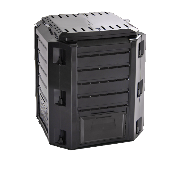 380L-es komposzttároló, egyszerű használat, egy kattintással összeállítható, lapra szerelt állapotban szállítható, mérete: 72 x 72 x 83 cm