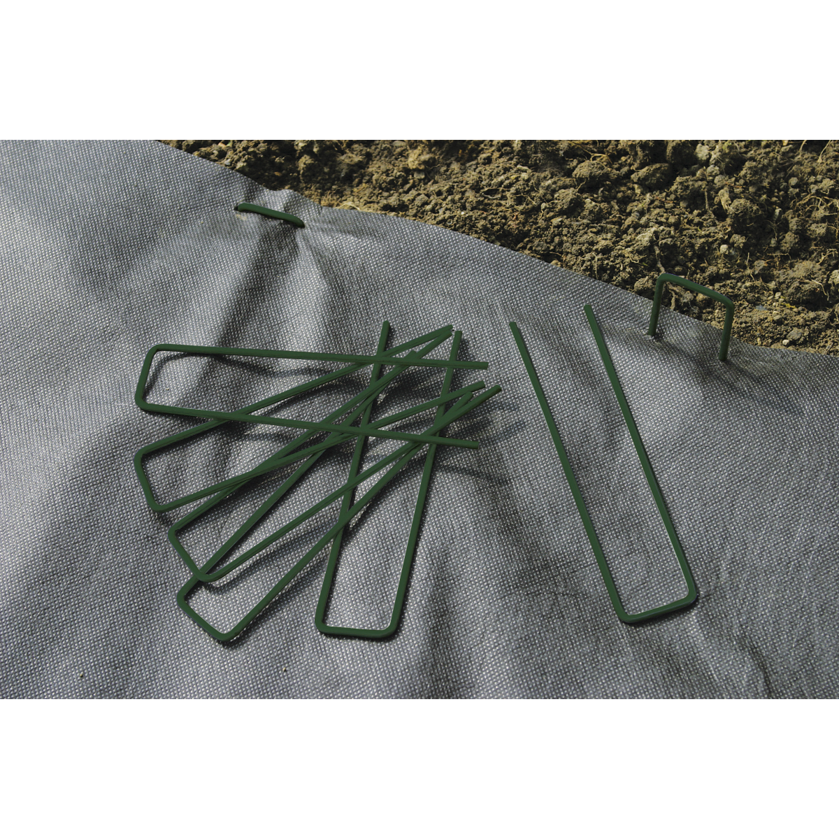 A műfű talajhoz való rögzítésének kiváló eszköze ez az U alakú fémkapocs. Zöld színének köszönhetően elveszik a műfűben, így nem feltűnő. Ha a talaj laza szerkezetű, akár kézzel is leszúrható. Rögzítéséhez gumikalapács ajánlott. Érdemes fél méterenként rögzíteni. Ha esetleg fel kell szedni a műfüvet, a fémkapocs könnyedén kihúzható a talajból.