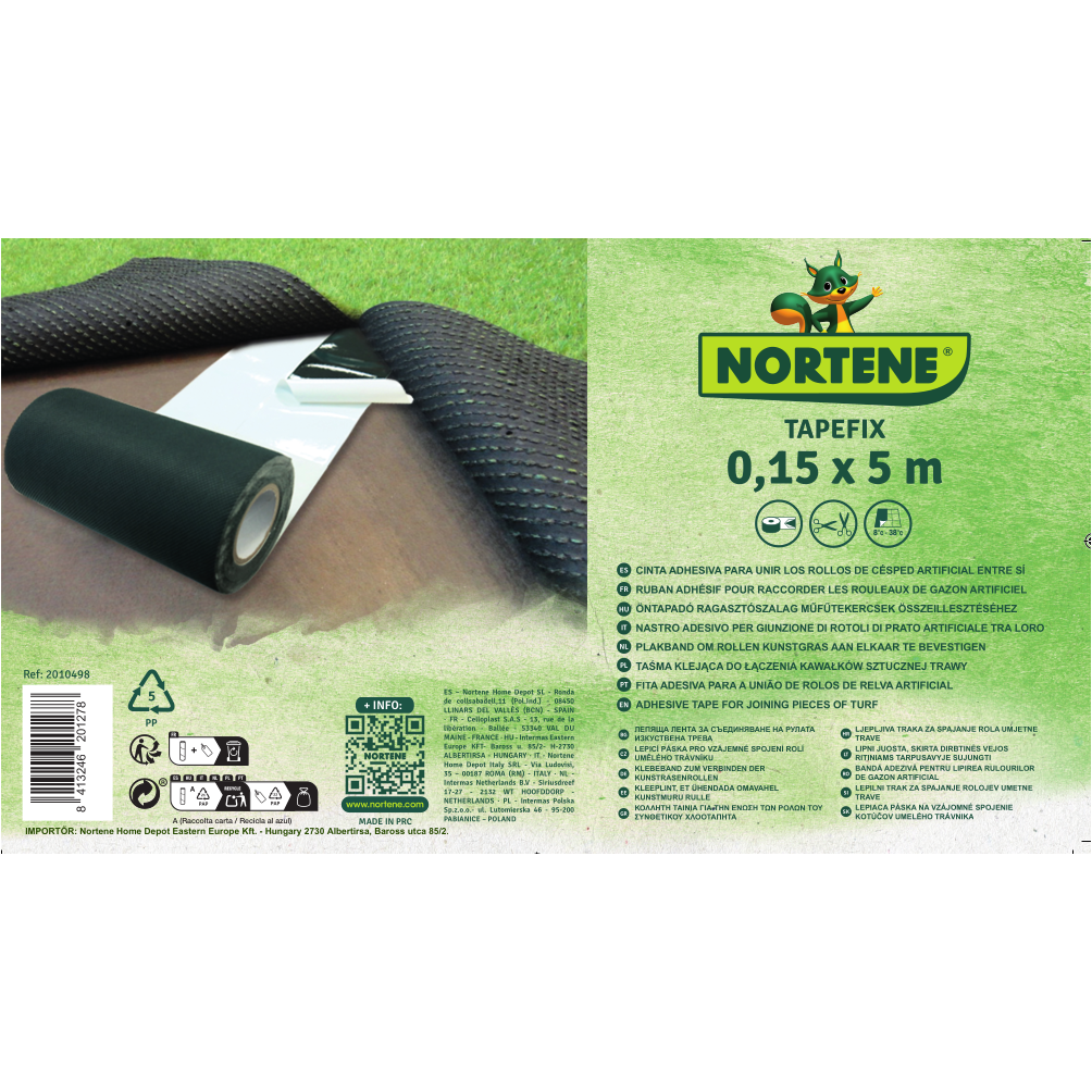 Öntapadó ragasztószalag a műfű tekercsek gyors illesztéséhez. A Tapefix innovatív és egyszerű megoldás a mesterséges gyep kialakítására. Az öntapadó szalag az egymáshoz illesztett műfű tekercsek közé illeszkedik, hogy azok megfelelően telepíthetők legyenek. Méret: 0,15 x 5m. Színe: zöld. Ollóval vágható. A szalag egyik oldala öntapadós. Telepítéskor érdemes a helyére elhelyezni és csak azután lehúzni róla a fehér védő részt.