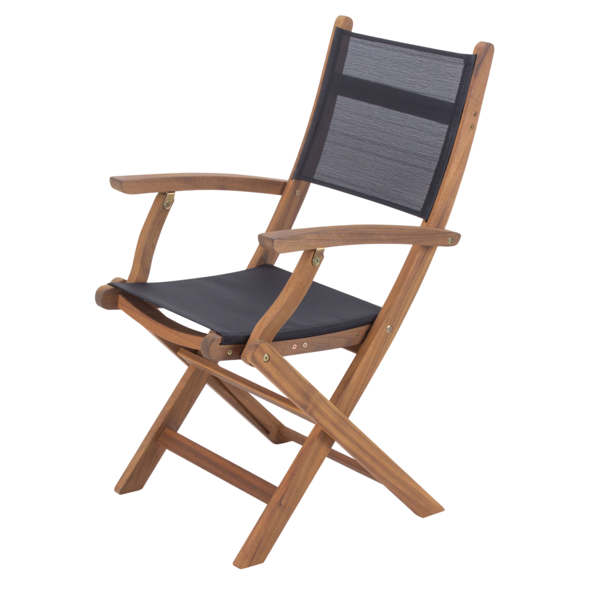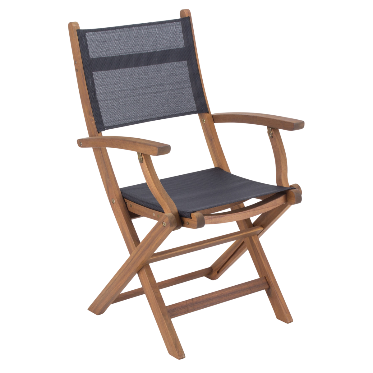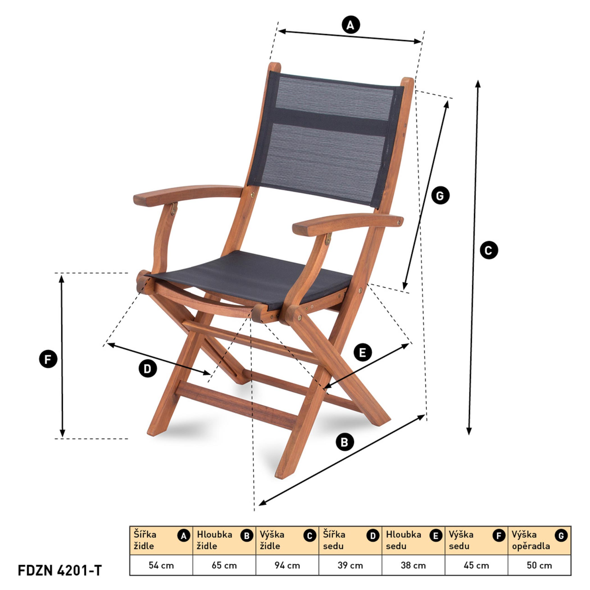 A 54×65×94 cm méretű szék akácfából és impregnált textilből készül, így ellenáll a szélsőséges időjárási körülményeknek, miközben kellemes komfortot nyújt. A háttámlás, karfás kialakítás stabil ülést biztosít, az összecsukható szerkezet pedig helytakarékos tárolást tesz lehetővé.