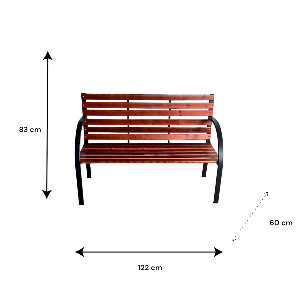 Ez a klasszikus megjelenésű kerti pad ideális választás kertbe, teraszra vagy udvarra, ahol kényelmes ülőhelyet szeretnél kialakítani két fő részére. Az időtálló acél váz és a természetes hatású fenyőfa ülő- és háttámla harmonikus kombinációt alkot, amely jól illeszkedik a legtöbb kültéri környezetbe.