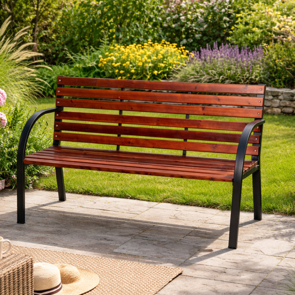 Ez az acélvázas fa kerti pad praktikus és esztétikus megoldás, ha tartós, kényelmes ülőalkalmatosságot keresel kültéri használatra.