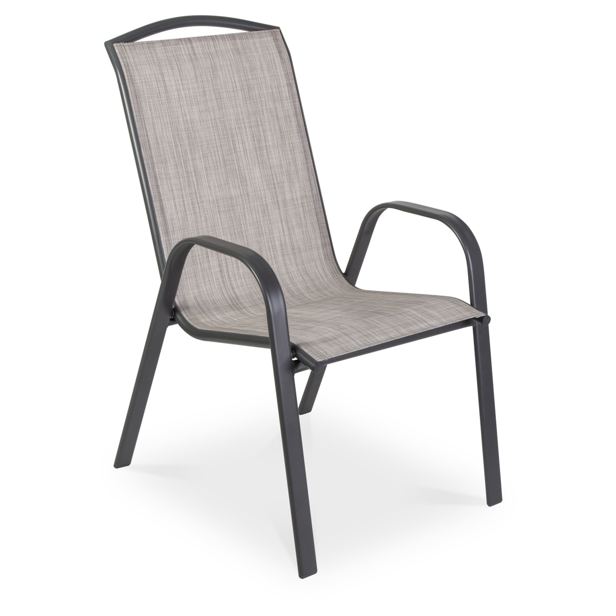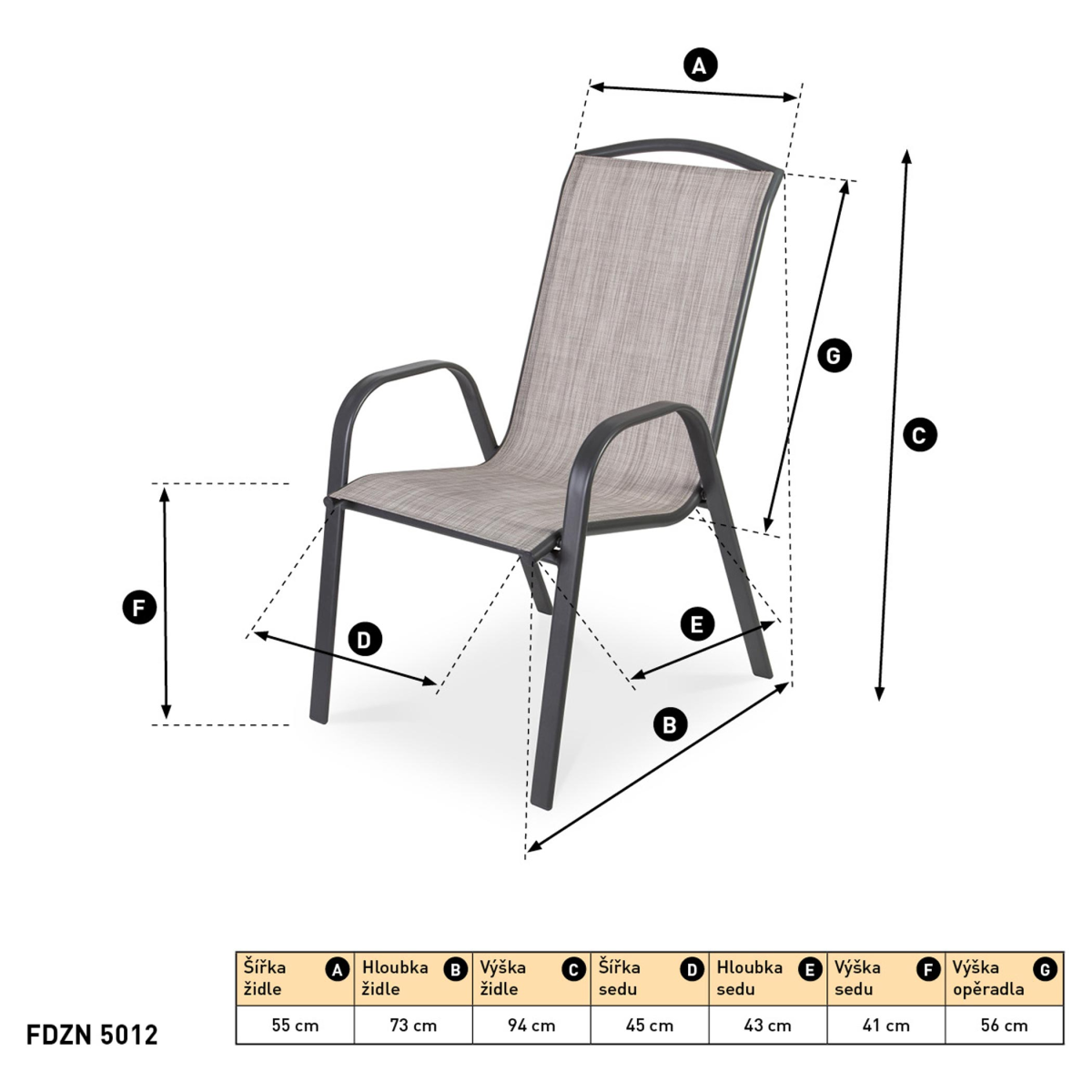 Ez a modern kerti szék erős acél vázból és tartós textil szövetből készült, így megbízható használatot biztosít. Magasított háttámlája és kényelmes karfái pihentető ülést tesznek lehetővé akár a szabadban, akár beltérben. Világos szürke kárpitozása és fekete váza elegáns megjelenést kölcsönöz bármilyen környezetben.