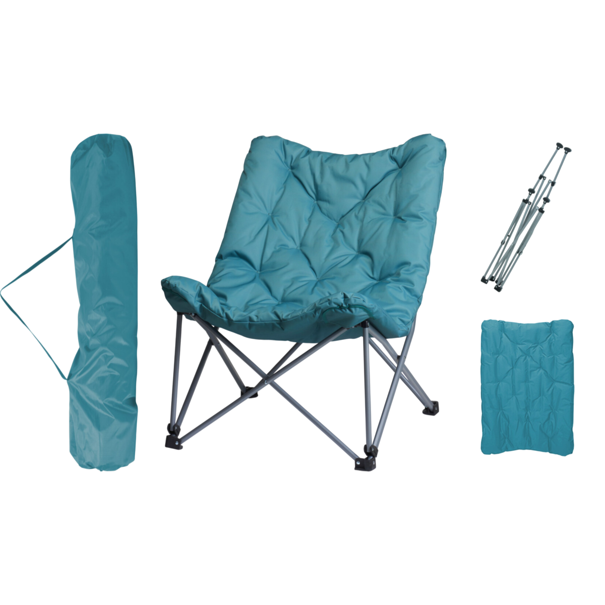 Ez a párnázott kempingszék ideális választás azoknak, akik a szabadban is a lehető legkényelmesebb ülőhelyet keresik. A masszív acélváz stabil tartást biztosít, a vastag, puha poliészter párna pedig hosszabb használat során is komfortos érzetet ad. A szék gyorsan összecsukható, és a mellékelt hordtáskában egyszerűen szállítható.