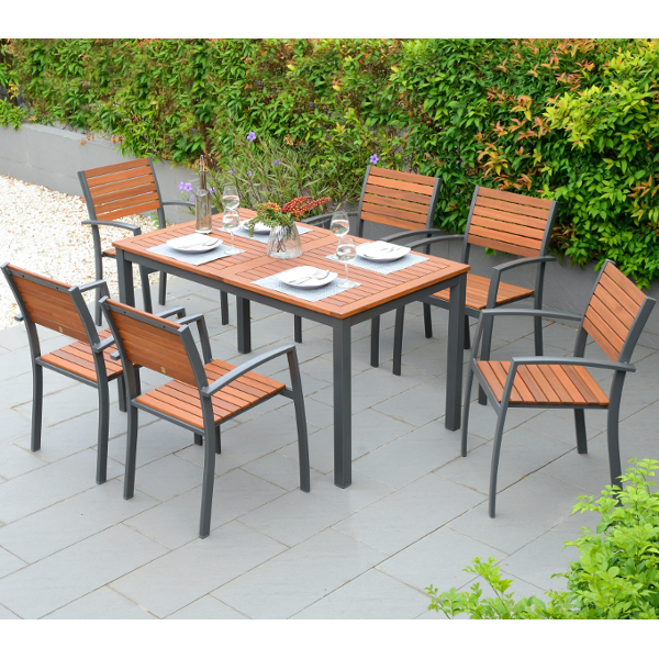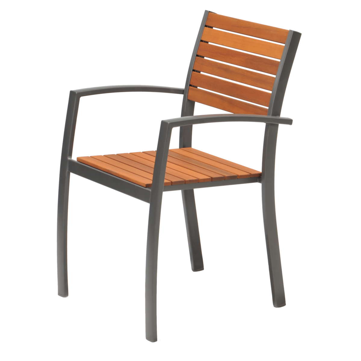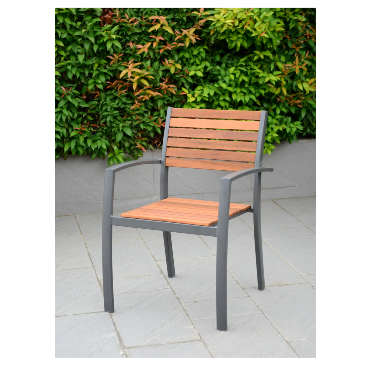 Kingsbury-lama fémvázas kerti szék, egymásba rakható, fa betéttel. Mérete 57x55 cm.