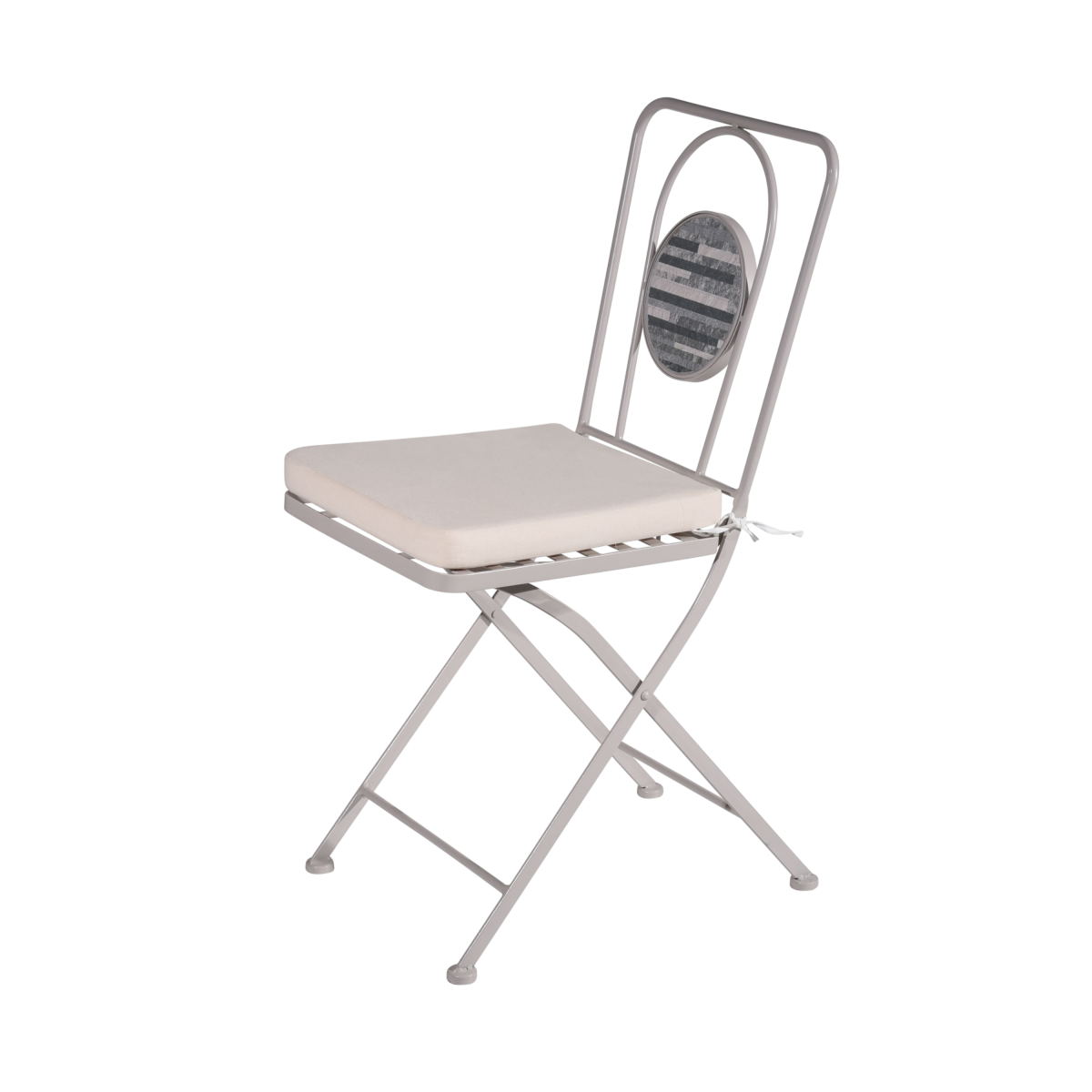 Összecsukható fém kerti szék kerámia díszítéssel – 38 × 51 × 86 cm
