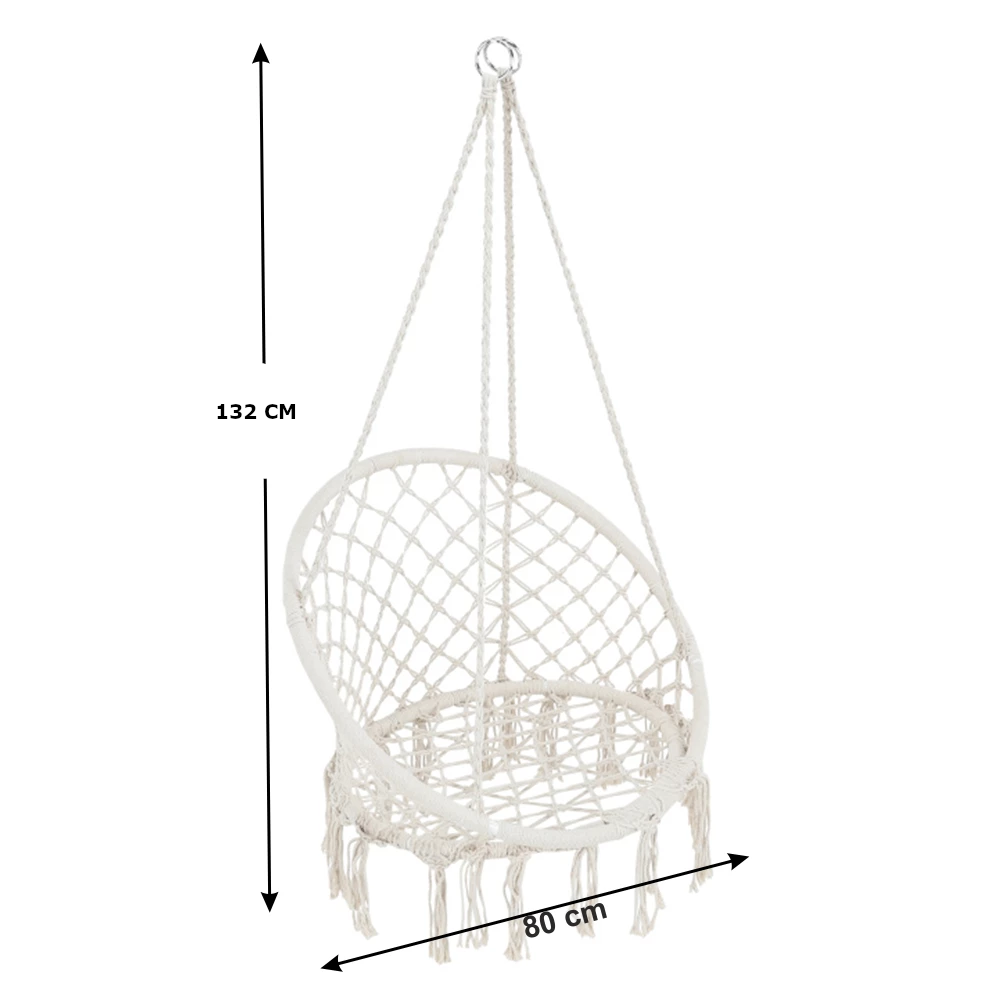 Ez a függőfotel tökéletes választás, ha szeretnéd a pihenésedet még kényelmesebbé és különlegesebbé tenni. Erős, 21 mm átmérőjű acél váza biztos tartást ad, a pamut és poliészter kötél pedig kellemes tapintást és megbízható stabilitást biztosít. A 3 cm vastag, 60 cm átmérőjű ülőpárna extra kényelmet nyújt akár hosszabb pihenés közben is.