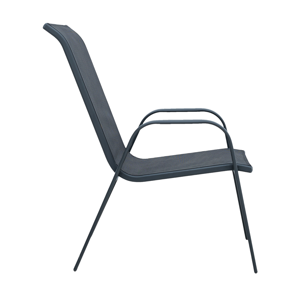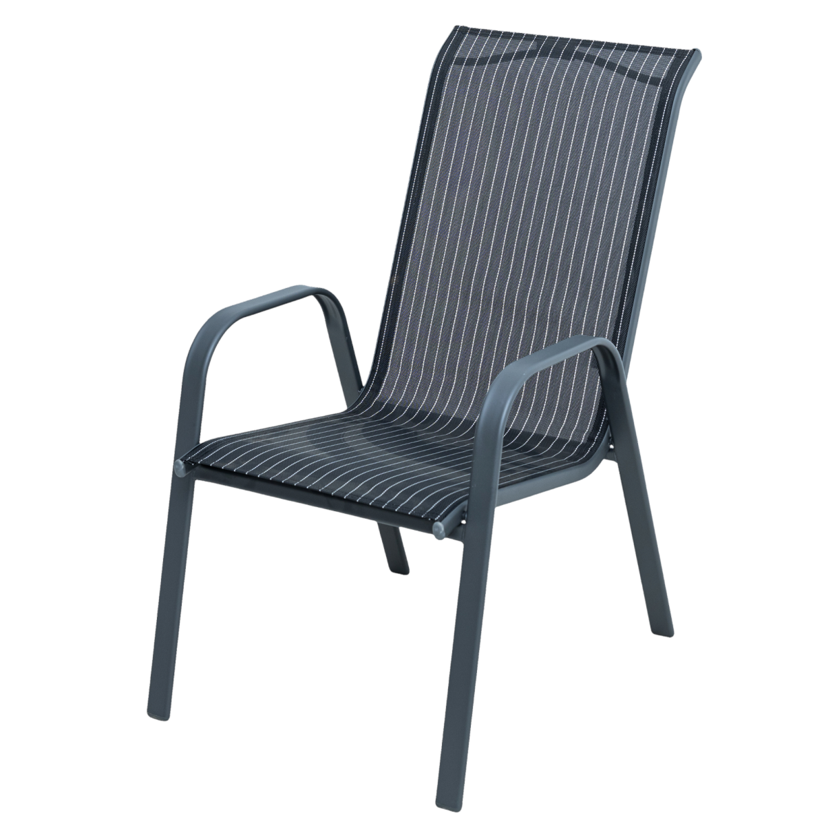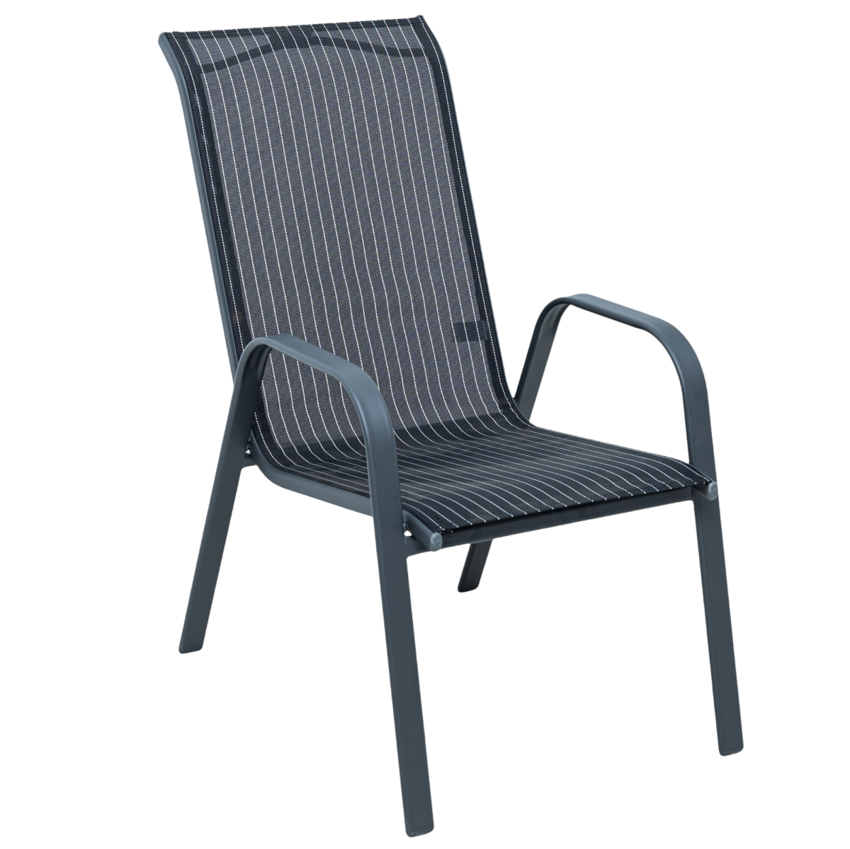 Ez a magastámlás kerti szék kényelmes és praktikus választás teraszra, kertbe vagy erkélyre. A porfestett acél váz stabil tartást biztosít, míg a légáteresztő textilén ülő- és hátfelület kellemes komfortérzetet nyújt még hosszabb használat során is.