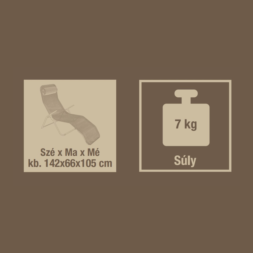 Ez a fémvázas napozóágy stílusos megjelenésével és praktikus kialakításával kiváló választás kertbe, teraszra vagy medence mellé. A porszórt acél váz erős és tartós, a vegyes szürke-fekete textilén huzat pedig jól szellőzik, így forró nyári napokon is kényelmes pihenést biztosít. A párnázott fejtámasz extra komfortot nyújt a kikapcsolódás pillanataihoz.