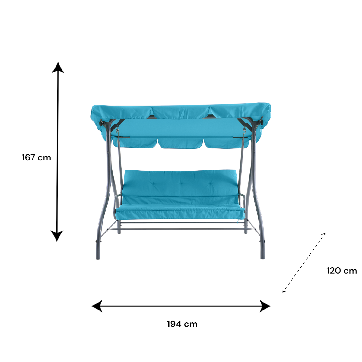 3 személyes hintaágy türkiz párnával – 194 × 120 × 167 cm