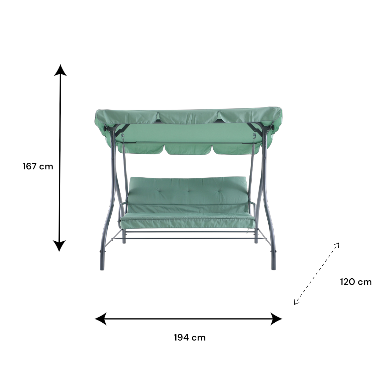3 személyes hintaágy világoszöld párnával – 194 × 120 × 167 cm