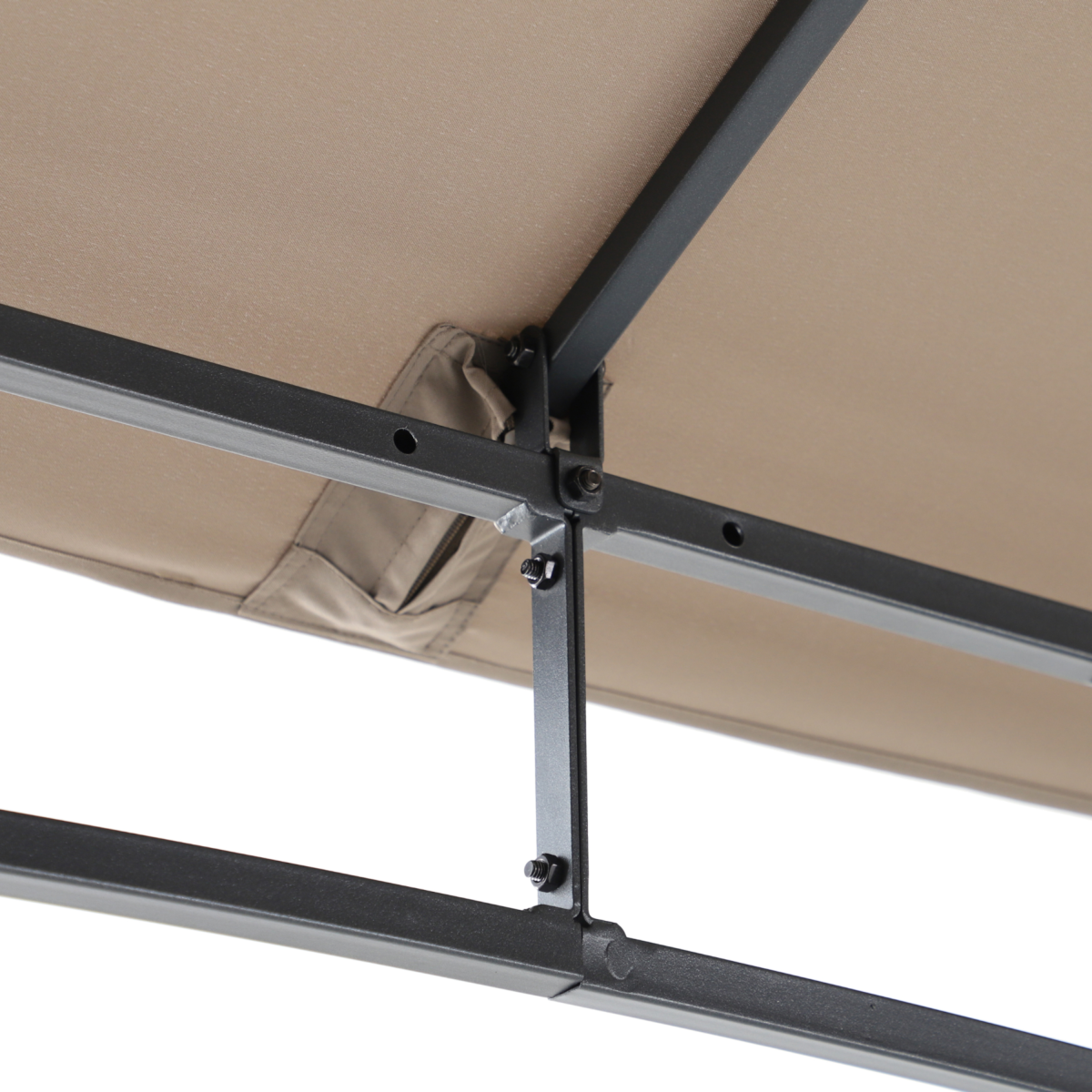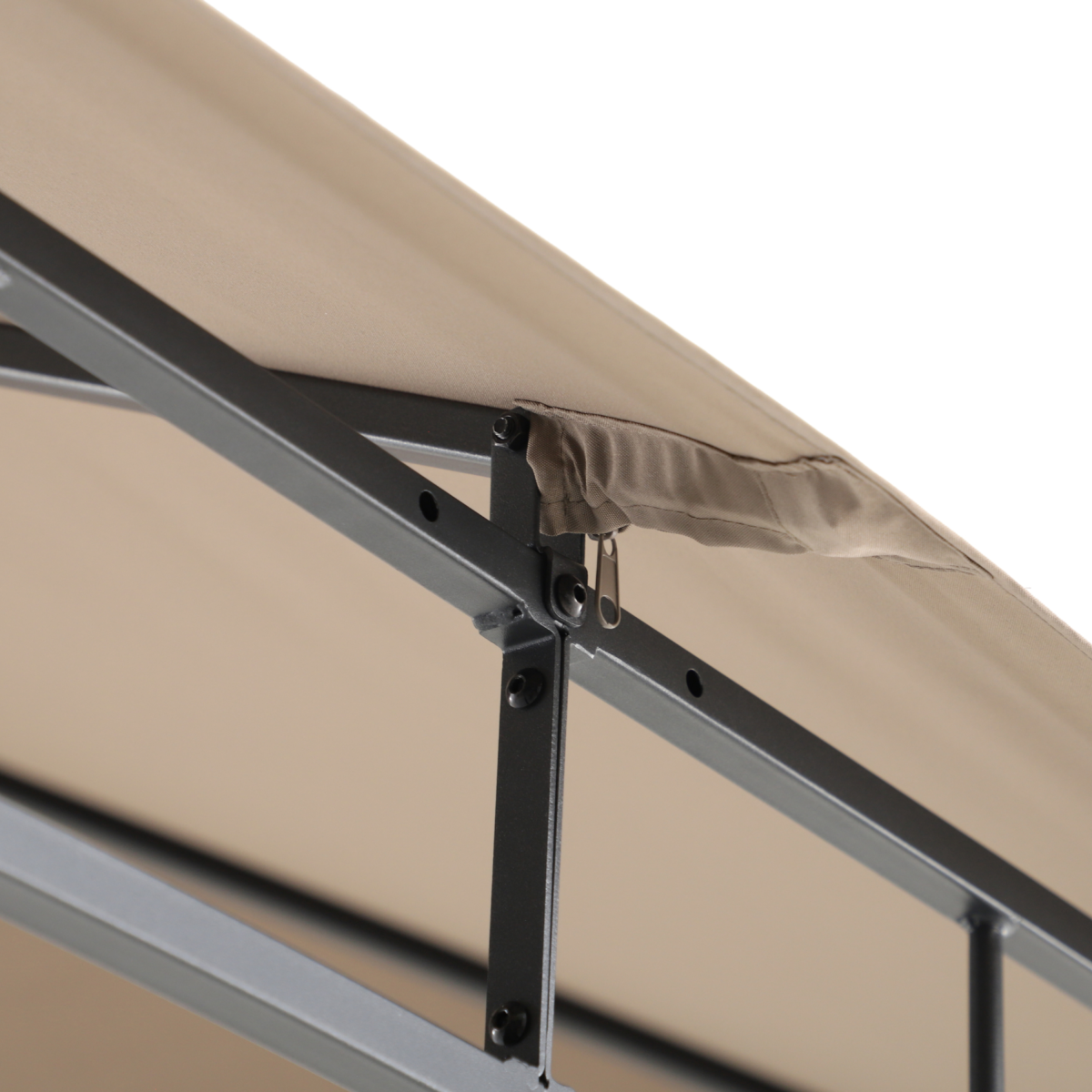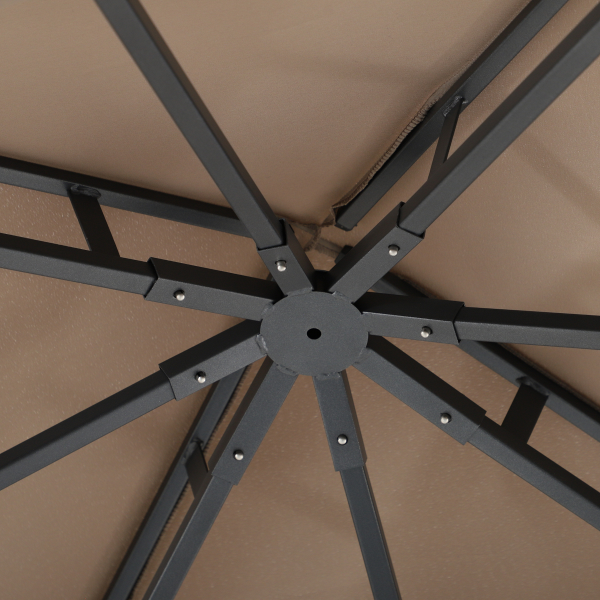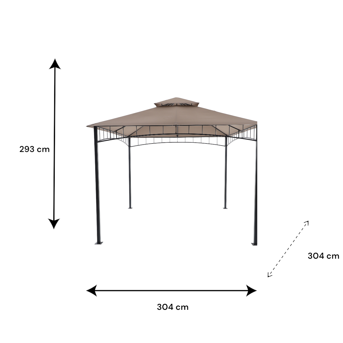 Fémvázas pavilon barna tetőponyvával – 304 × 304 × 293 cm