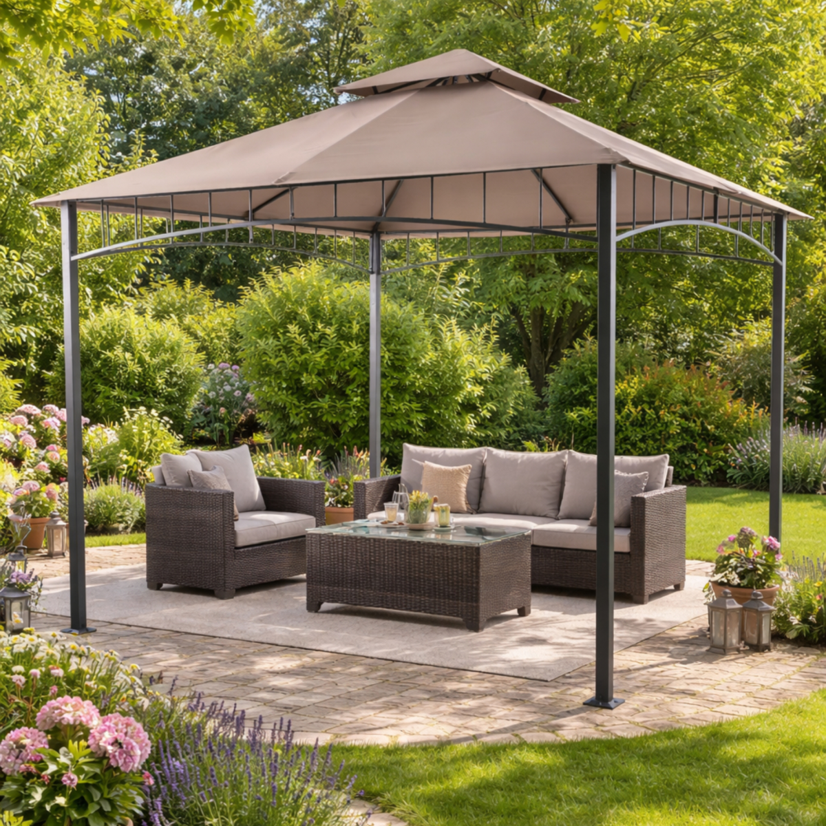Ez a fémvázas pavilon jó választás, ha stabil, nagy méretű és jól kihasználható fedett kültéri megoldást keresel kertedbe vagy teraszodra.